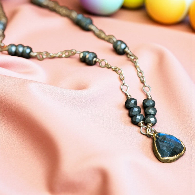 Radiant Beauty: Labradorite and Pyrite Gold Gemstone Necklace