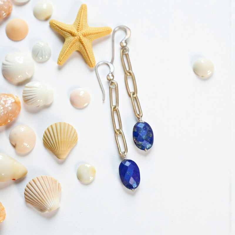 Radiant Confidence: Lapis Lazuli Gold Dangle Earrings