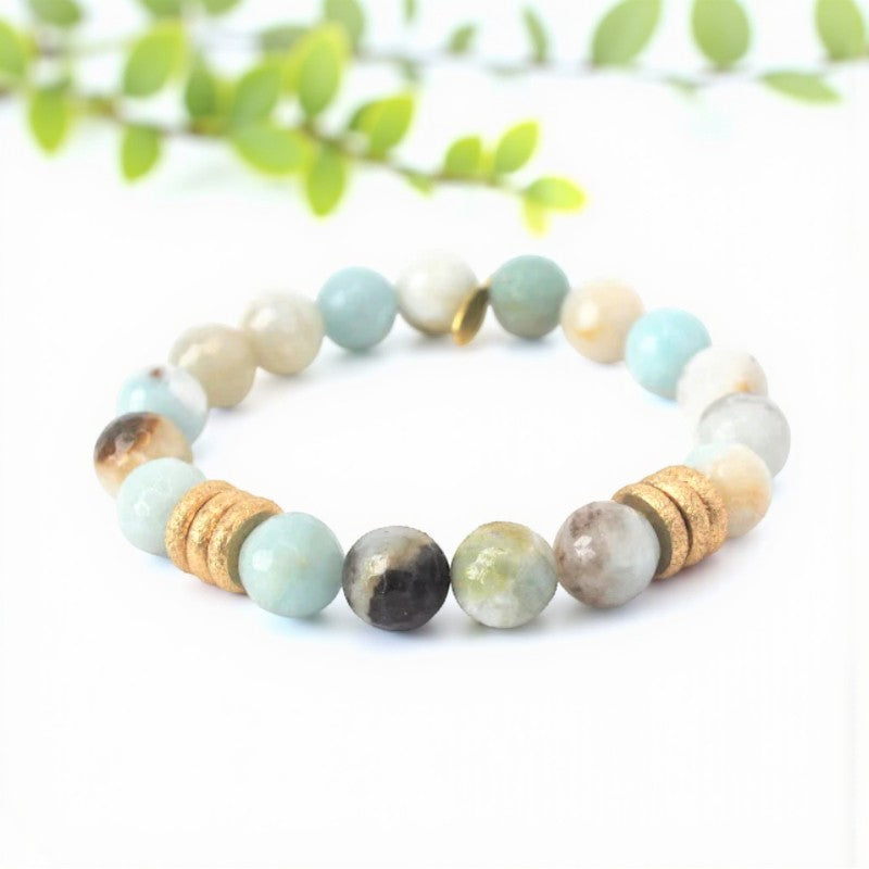 The Amazonite crystal bracelet serves as a soothing stone, transporting you to a serene mental space akin to the beach, reducing stress and anxiety. It aids in quieting the mind, promoting restful sleep, and filtering out undesirable electromagnetic waves from technology, ensuring a sense of tranquility and well-being.