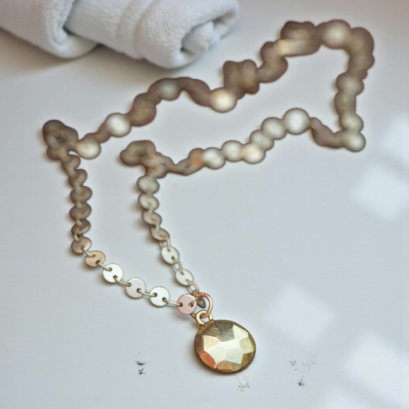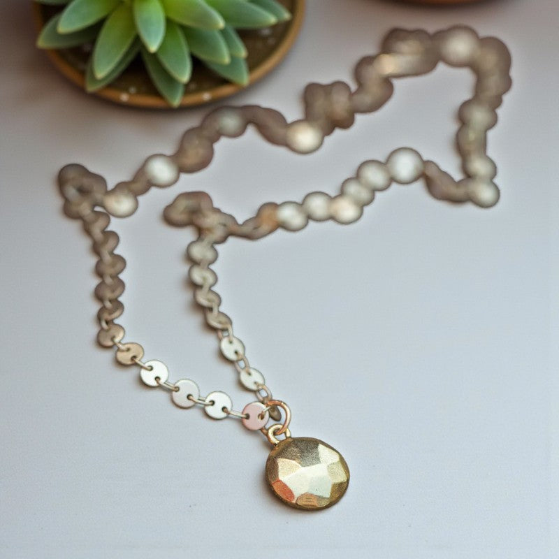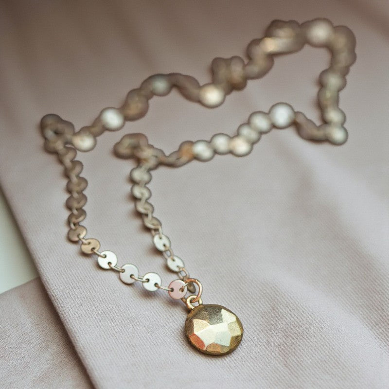 Radiant Prosperity: Gold Faceted Circular Disc Necklace