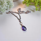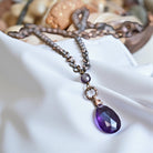 At the heart of this necklace, the focal amethyst crystal radiates creative energy, fostering harmony and boosting confidence. The round amethyst piece, elegantly attached to a textured antique copper ring, adds a touch of distinction to the overall design, ensuring that it stands out as a symbol of grace and empowerment.