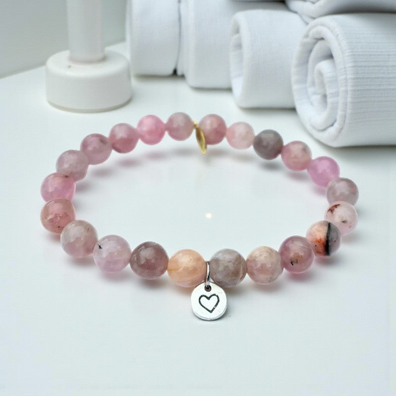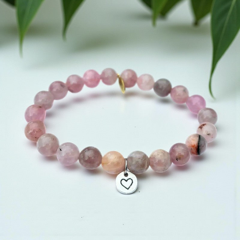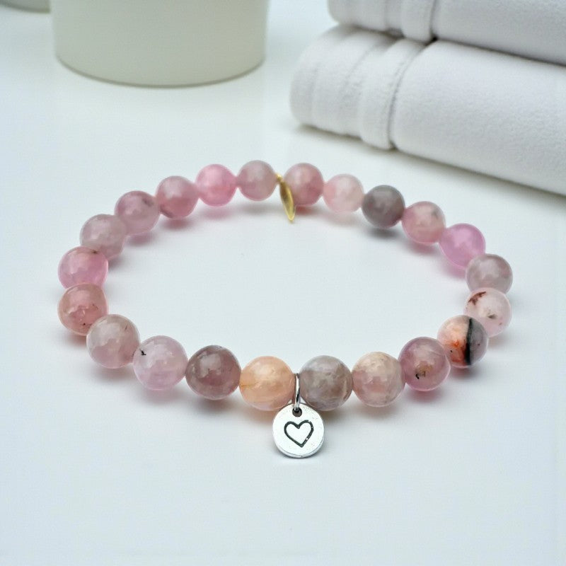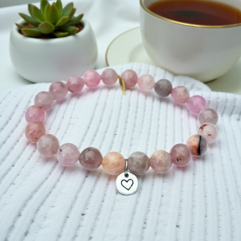 Rose Quartz Madagascar Bracelet with Sterling Silver Heart Charm