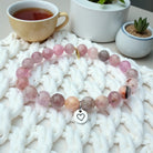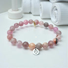 Embark on a journey of love and emotional healing with the Madagascar Rose Quartz and Sterling Silver Heart Charm bracelet, a fusion of serene rose quartz and a delicate sterling silver heart charm crafted to nurture the heart chakra and evoke feelings of love, balance, and self-worth. This exquisite bracelet showcases polished 8mm Madagascar rose quartz beads strung on a sturdy clear elastic cord, adorned with a sterling silver heart charm, and complemented by a natural gold Infinite Warrior charm.