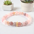 Rose Quartz Madagascar Crystal Bracelet with Golden Brass Ring Accent