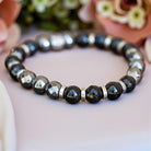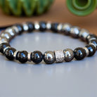 Silver accents elevate the bracelet's elegance, infusing sophistication into an already refined design. Silver, renowned for its aesthetic appeal and energetic properties linked to emotional equilibrium and intuition, enhances the beauty of hematite and black onyx. Reflecting light and accentuating the allure of the dark stones, the silver beads imbue a luminous quality to the bracelet, creating a timeless, versatile style that complements both casual and formal attire.