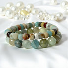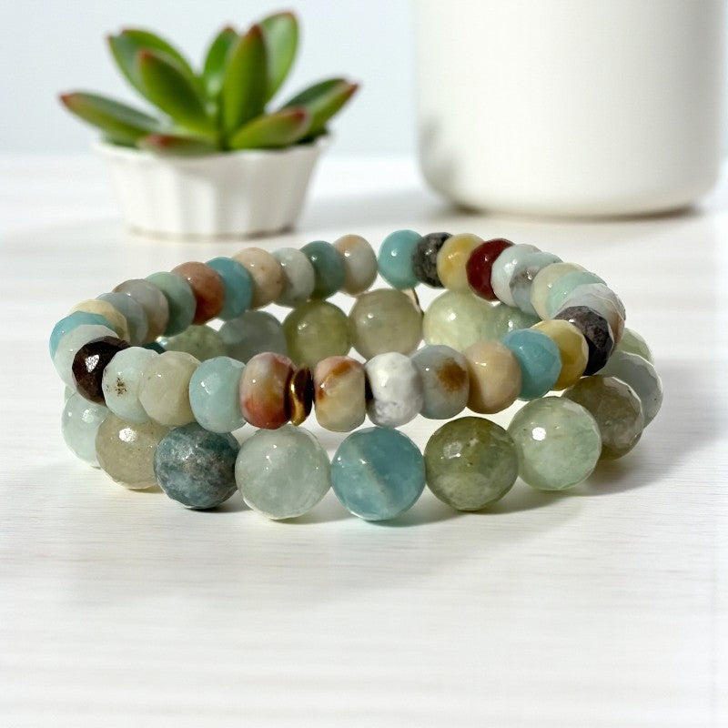 Wearing this bracelet stack can help you navigate life's challenges with grace and resilience. The aquamarine crystal provides mental strength and protection, while the amazonite crystal supports emotional well-being and clear communication.