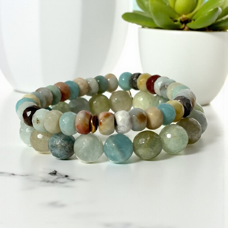 Seaside Serenity Stack | Beachside Amazonite + Aquamarine Bracelets
