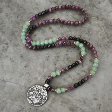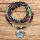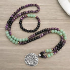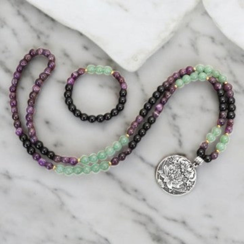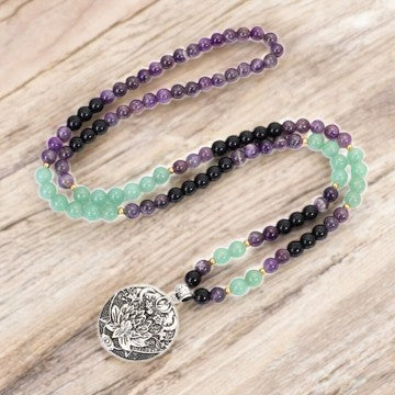 108 Mala Beads Amethyst Green Aventurine Lotus Meditation Bracelet