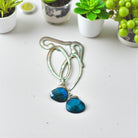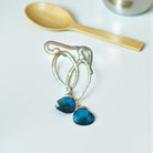 The focal point of this pair is the enchanting labradorite gemstone, which radiates a symphony of colors—blues, greens, tans, and purples—creating a dazzling kaleidoscope effect that mesmerizes all who behold it.