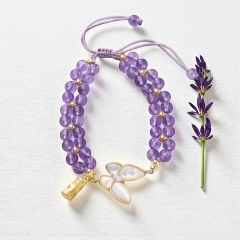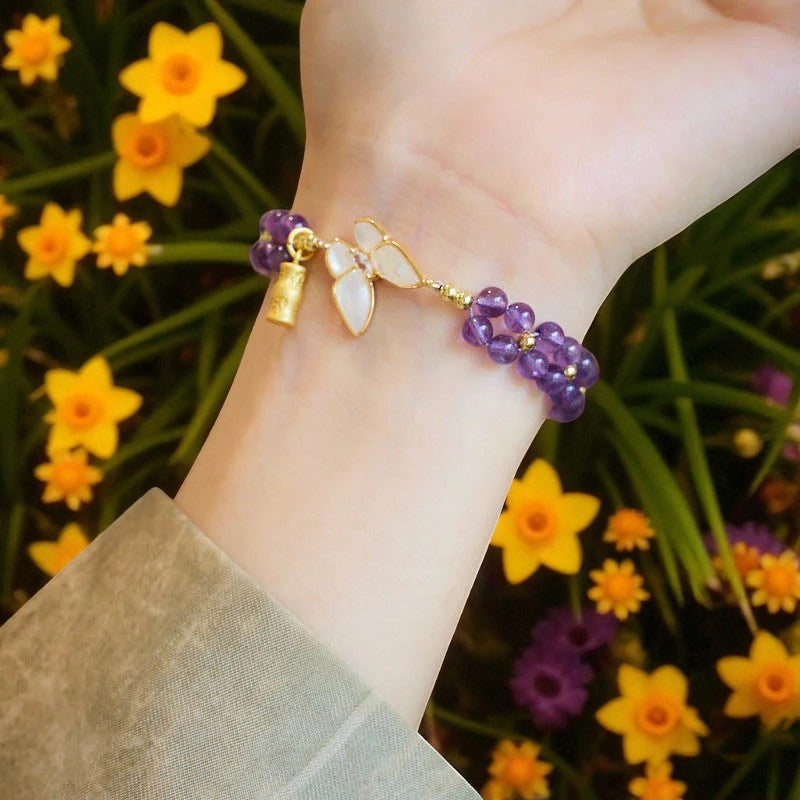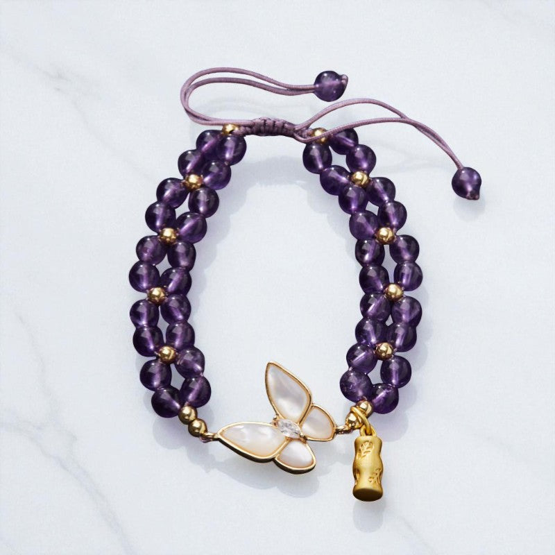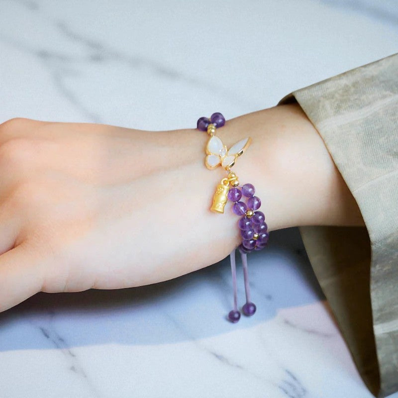 Mystical Tranquility Amethyst Butterfly Bamboo Bracelet