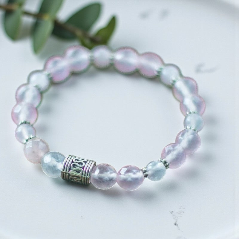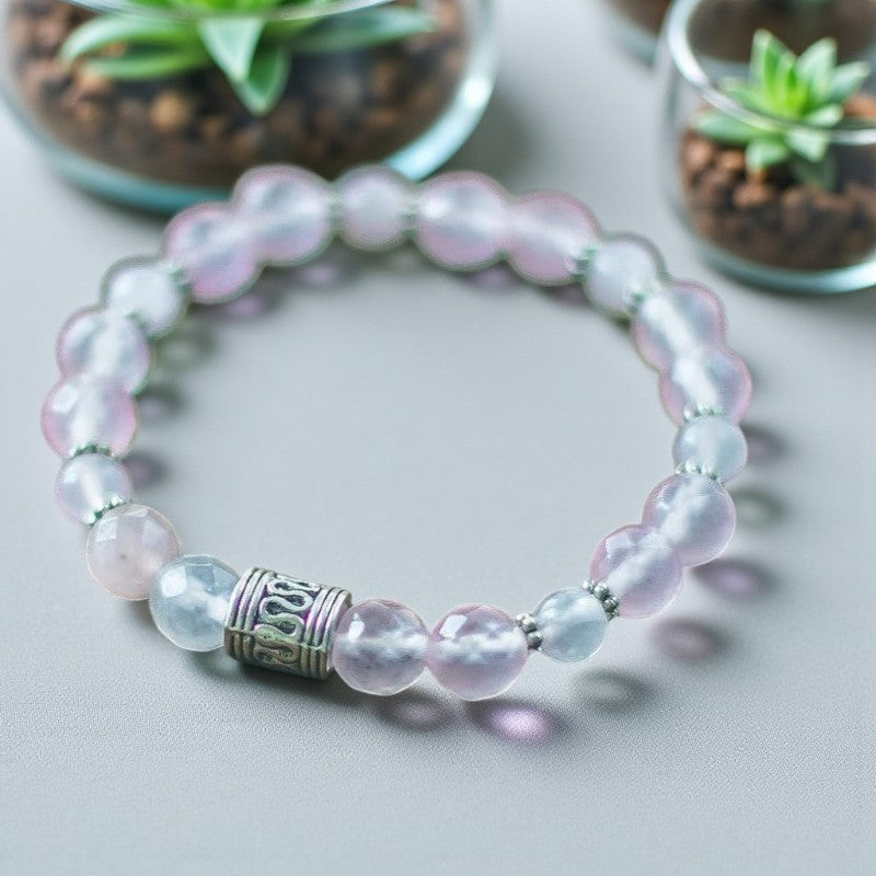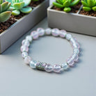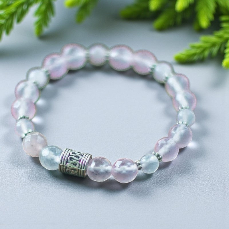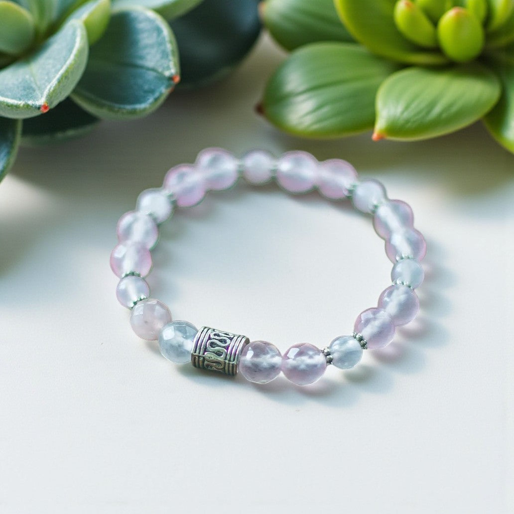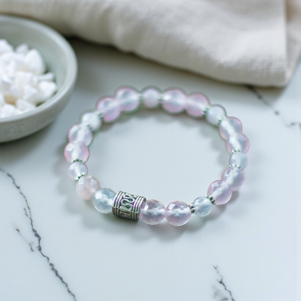 Serenity's Embrace: Rose Quartz Bracelet Adorned with Silver Beads