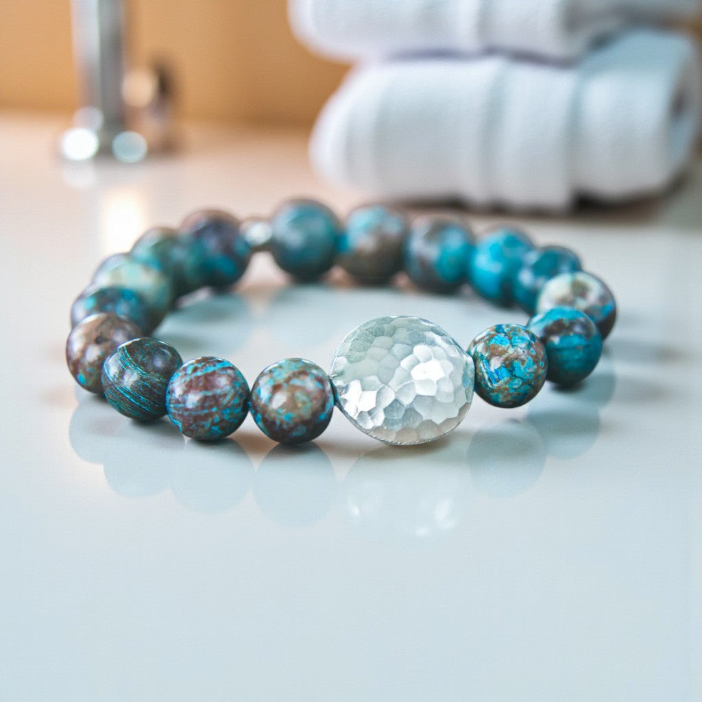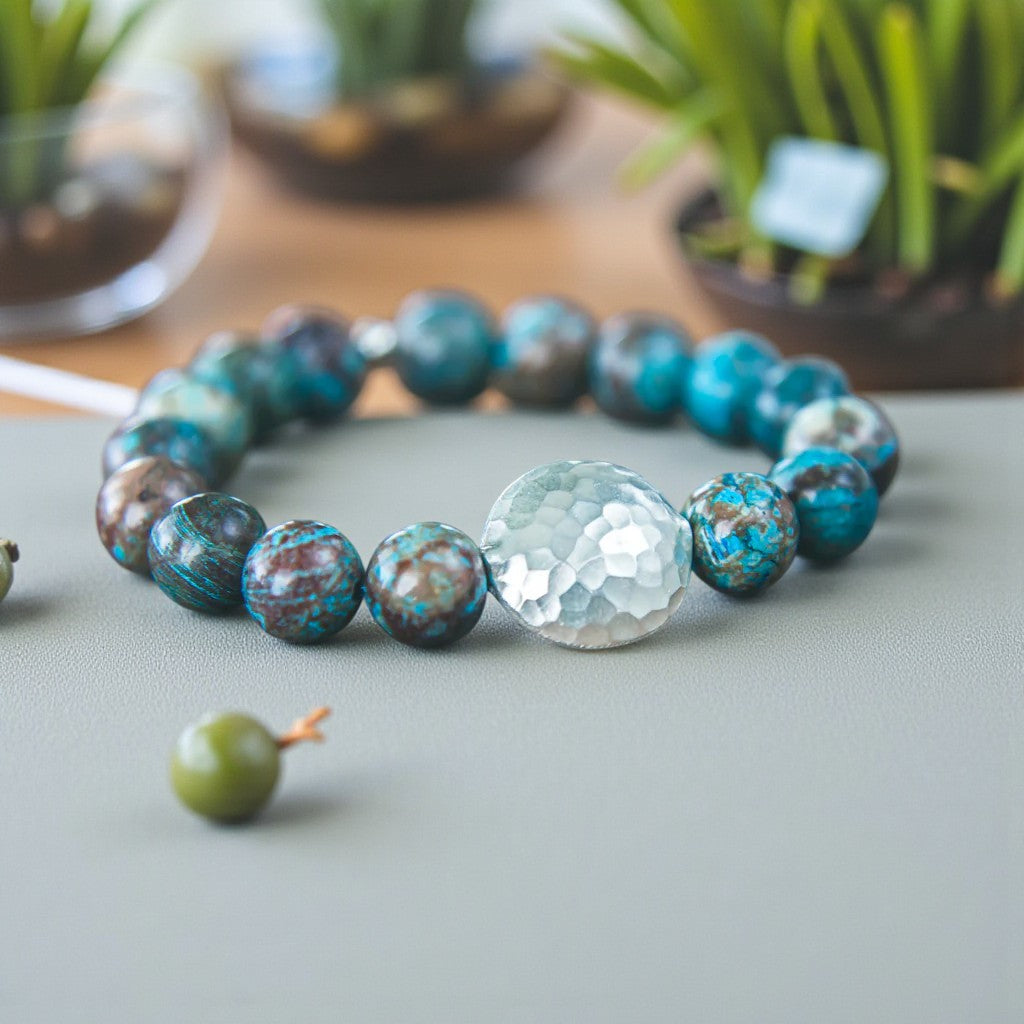 The bracelet's closure, a standout silver bead, complements the overall design, enhancing its allure. Embrace your confidence and style by adorning this bracelet, which not only elevates your fashion statement but also harnesses the healing properties of its gemstones. Experience a myriad of benefits, from harmonizing your mind, body, and spirit to enhancing stamina and fostering courage, empowering you to embrace your true self with unwavering conviction.