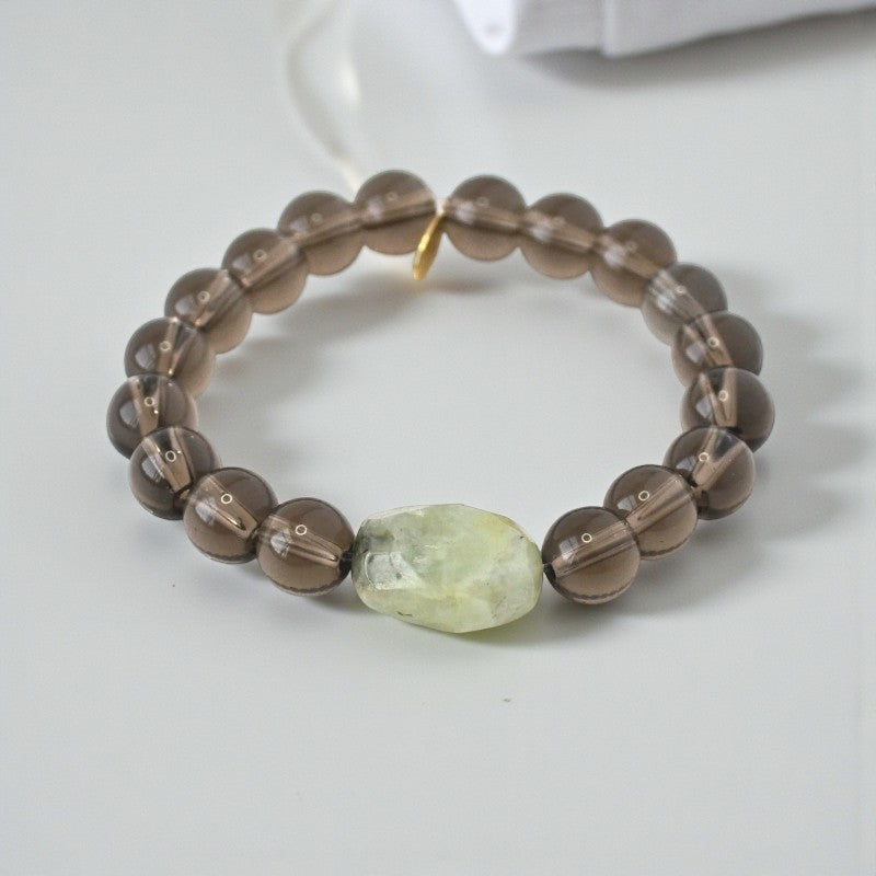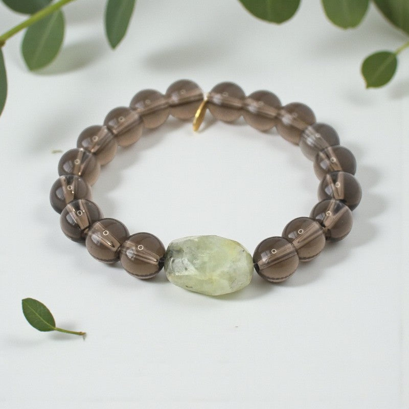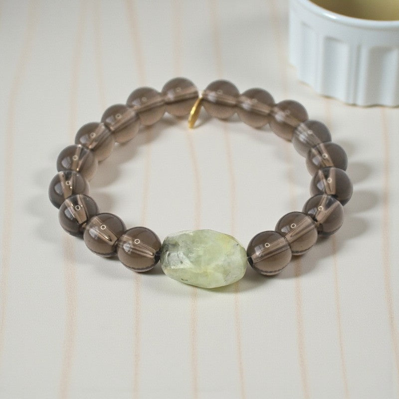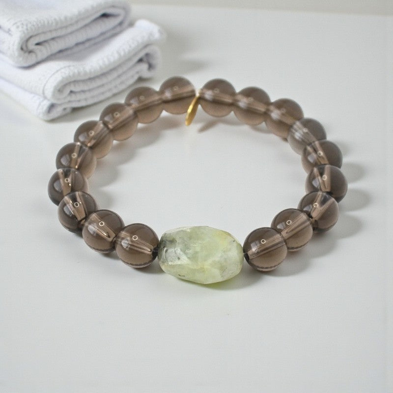 Smoky Quartz & Prehnite Dual Gemstone Bracelet