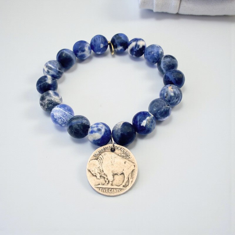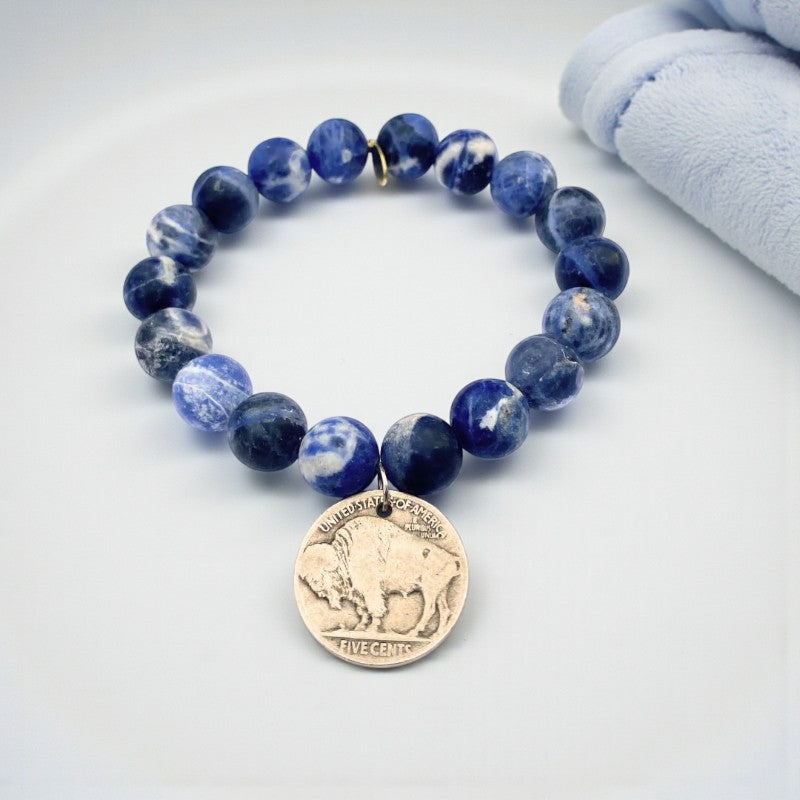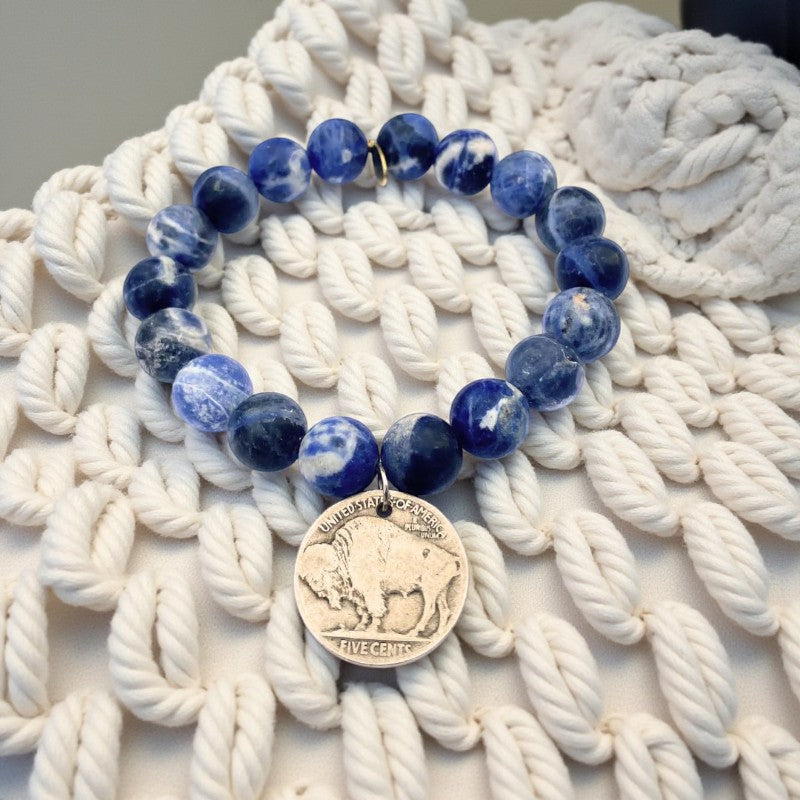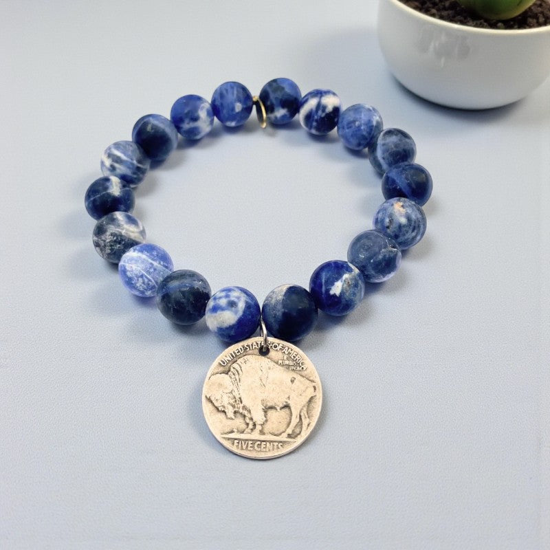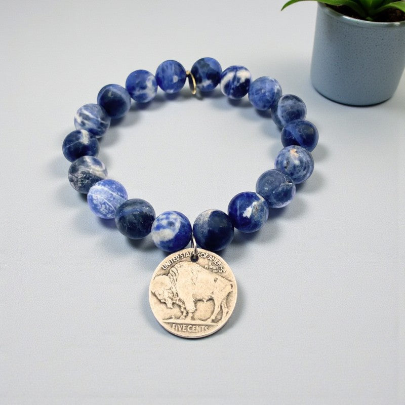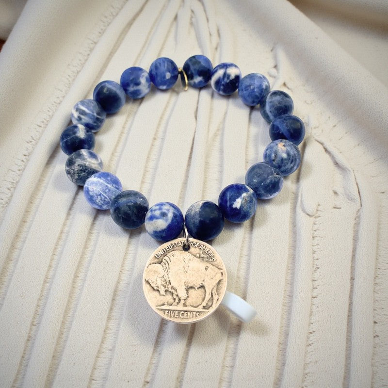 Sodalite Crystal Bracelet with Silver Buffalo Nickel Accent