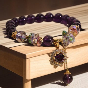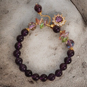 Amethyst, Green Crystal, Citrine, White Crystal Sunflower Bracelet