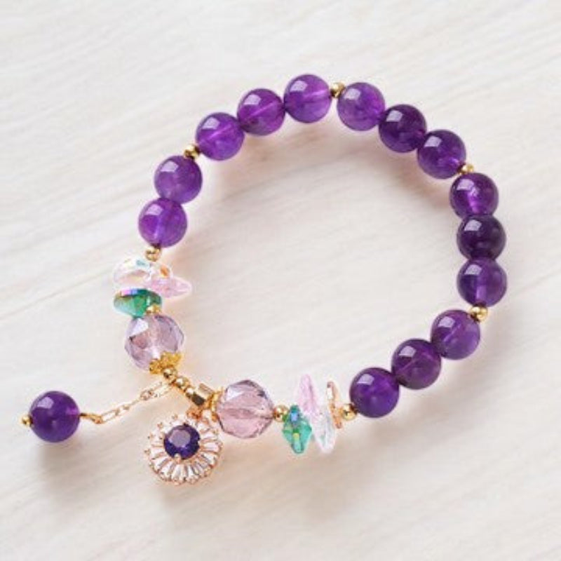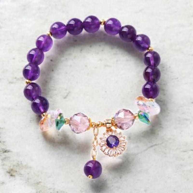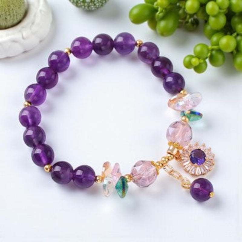 Immerse yourself in the transformative energy of our enchanting "Celestial Harmony: Natural Amethyst Zircon Spiritual Healing Charm Bracelet." Crafted to perfection, this bracelet exudes the serene influence of amethyst, known for instilling inner peace, courage, and a spark of creativity. Its gentle essence makes it a meaningful gesture for individuals seeking solace from anxiety and stress, while nurturing their spiritual and physical well-being.💕
