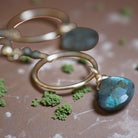 Embodying a mesmerizing fusion of Labradorite and Pyrite, enhanced by the radiant allure of gold, these circular earrings are truly a sight to behold.