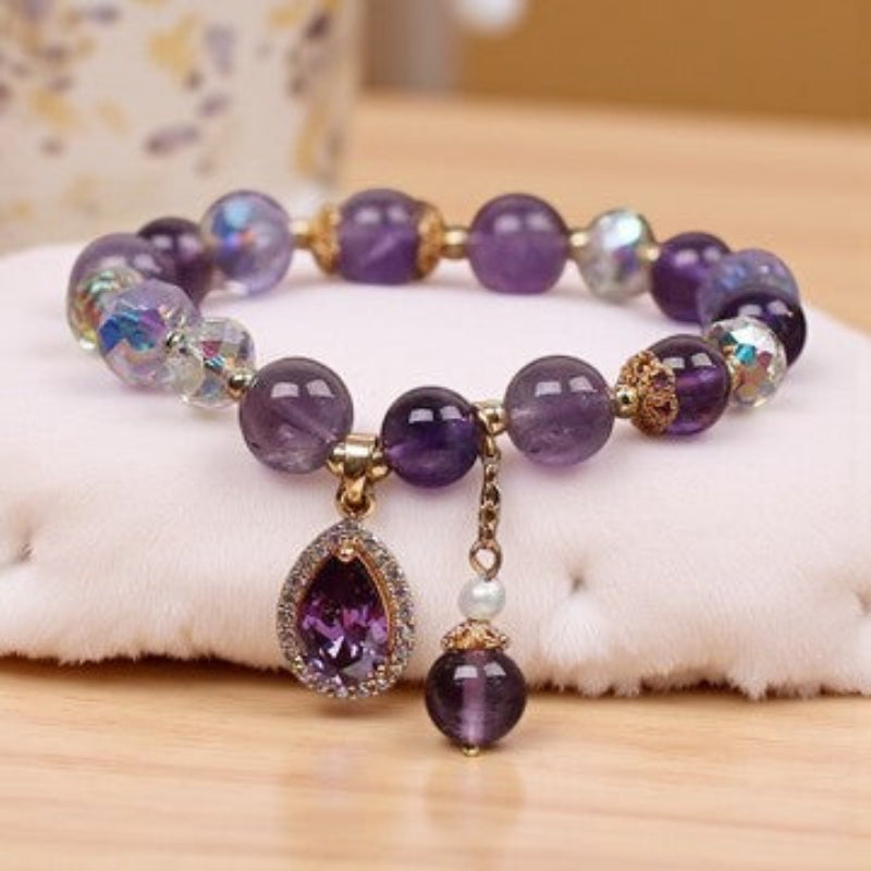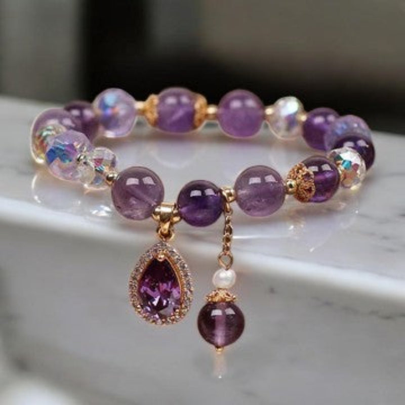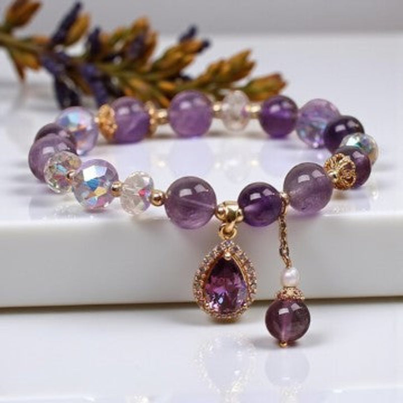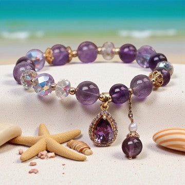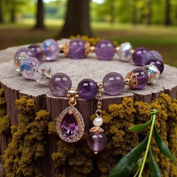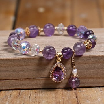 Soulful Serenity: Natural Amethyst Zircon Heart Healing Charm Bracelet