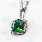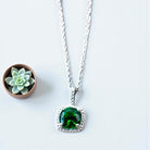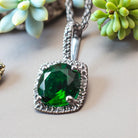 Symphony of Serenity: Emerald and Diamond Sterling Silver Necklace