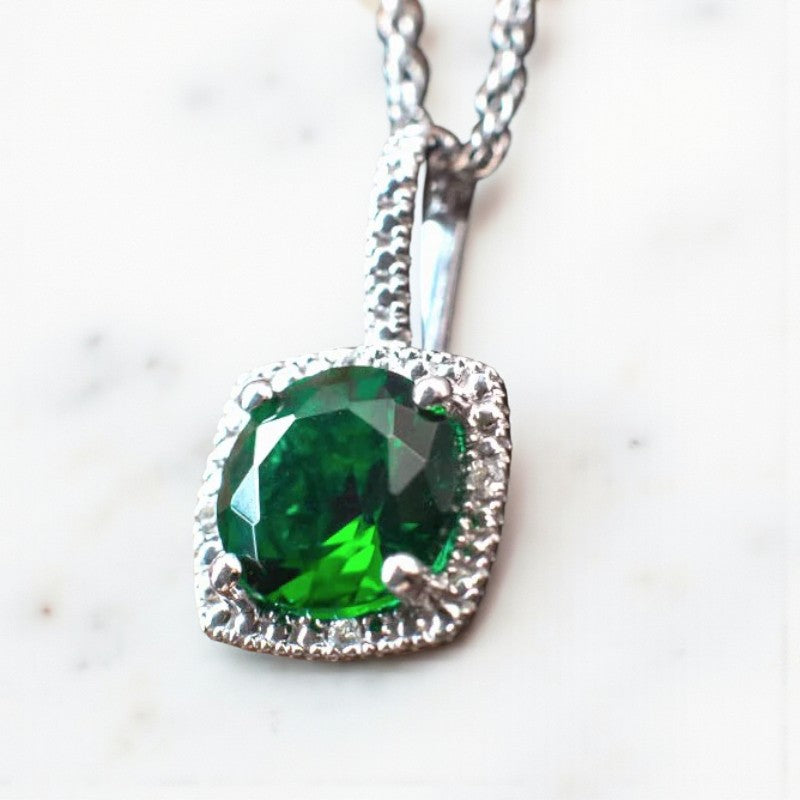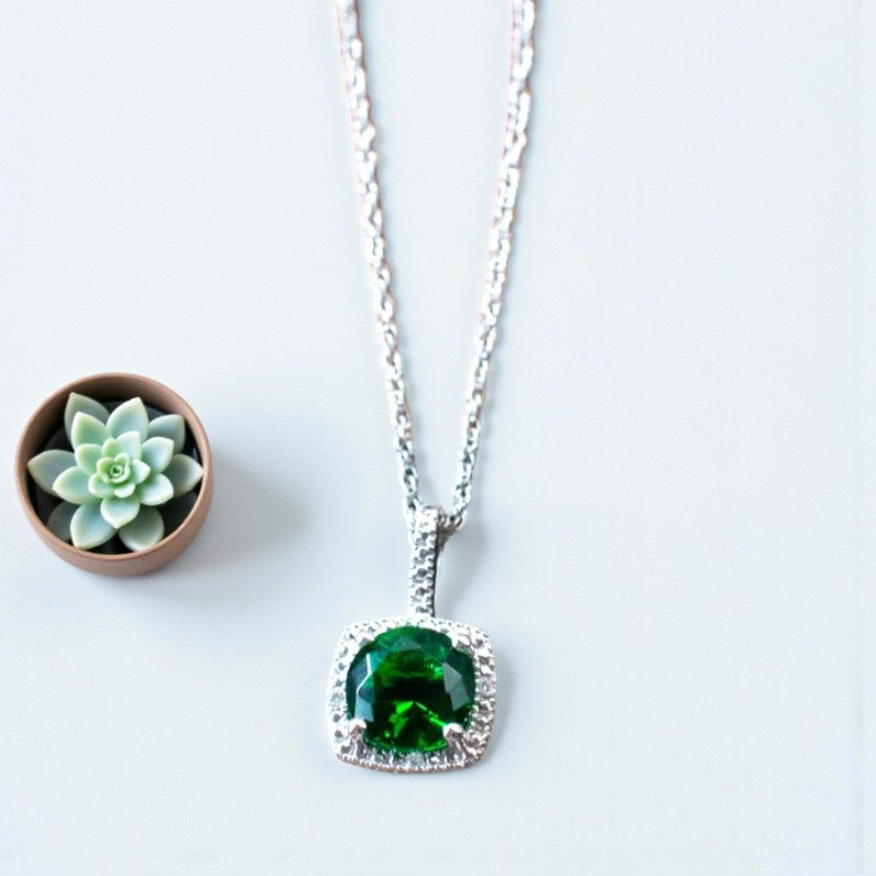 Immerse yourself in the essence of balance and harmony with this captivating Emerald and Diamond Sterling Silver Necklace. Symbolizing abundance, prosperity, and growth, the lush green hue of the emerald resonates with the natural world, the realm of business, and the depths of our inner selves.