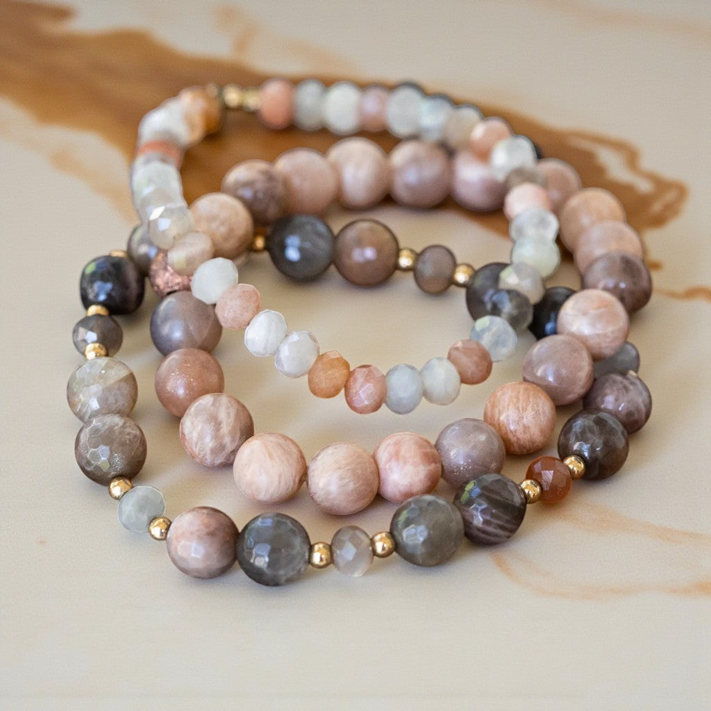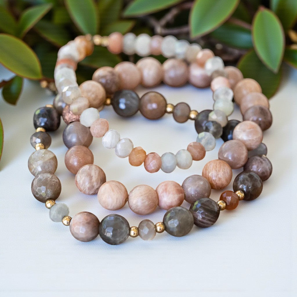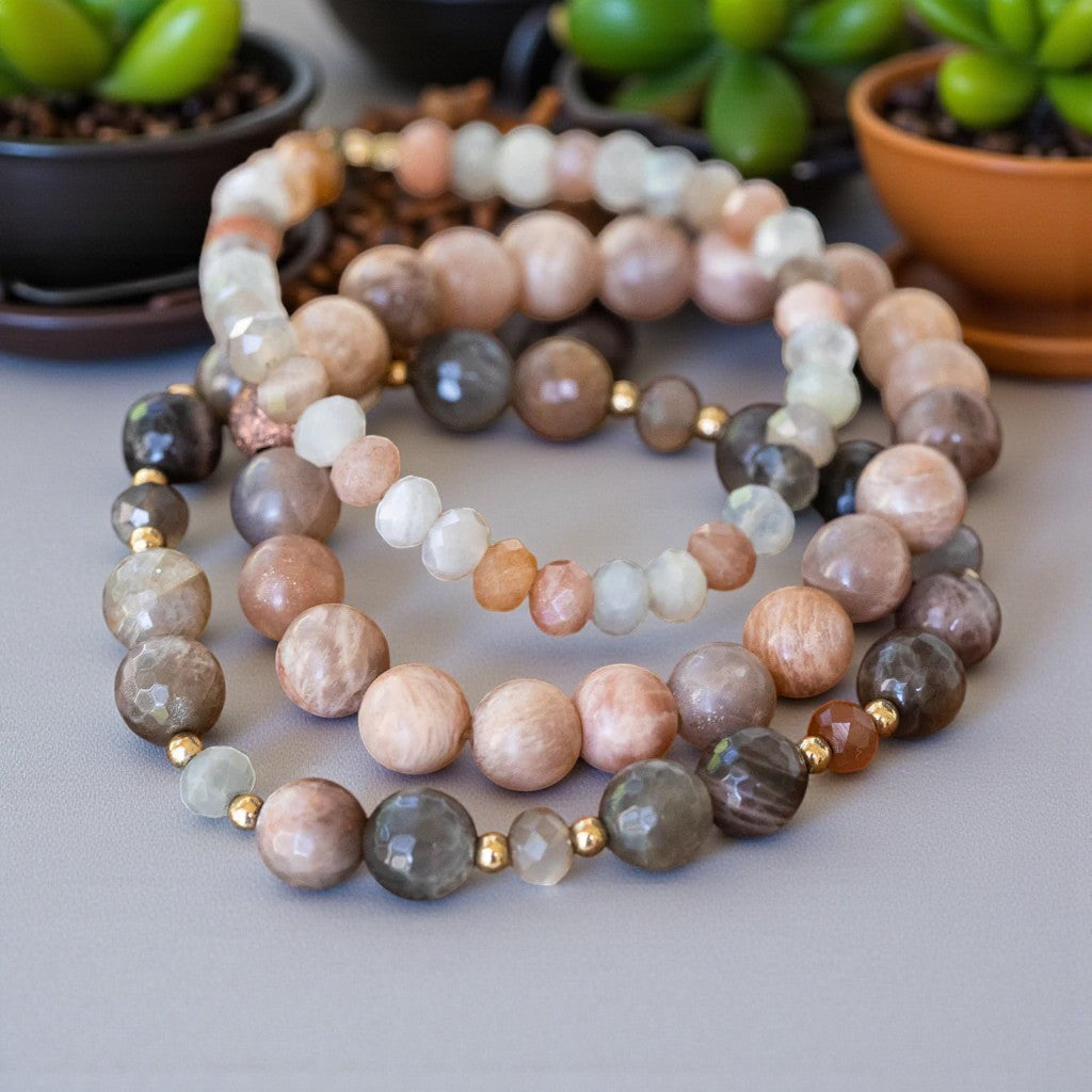 The Essence of Harmony: Moonstone, Sunstone, and Peach Moonstone Triad