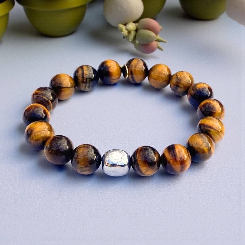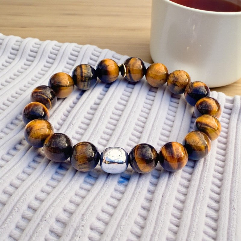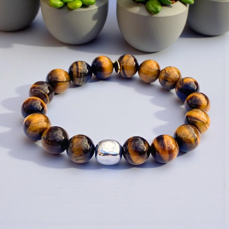 Tiger Eye Crystal Bracelet with Hematite Center Stone