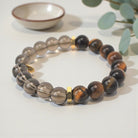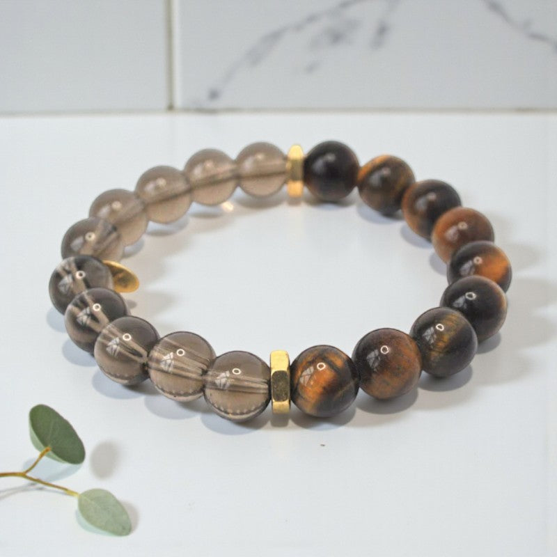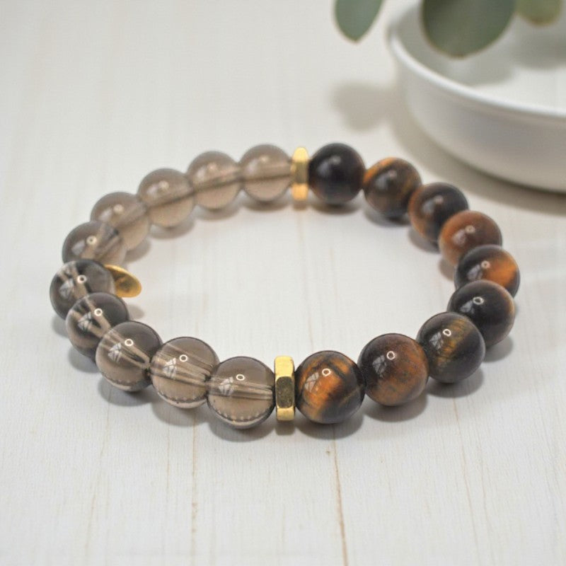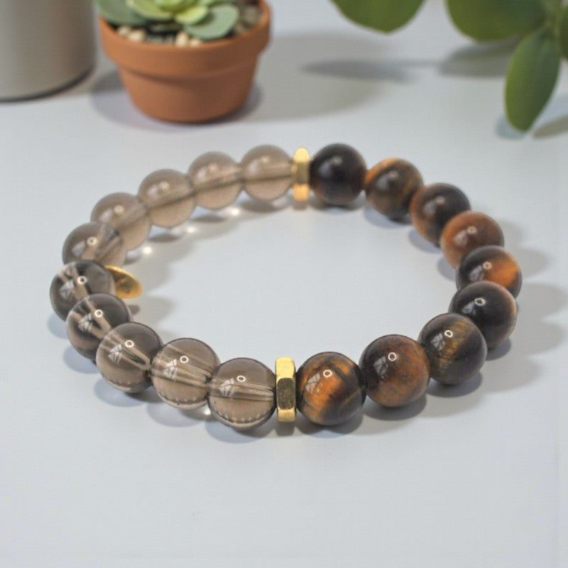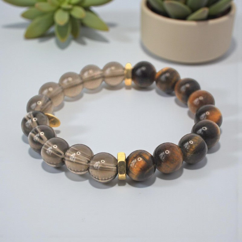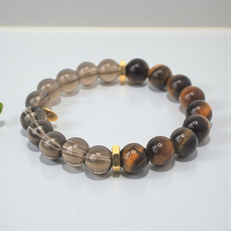Wear the Tiger Eye and Smoky Quartz bracelet as a symbol of personal empowerment, positive energy, and emotional balance. Let the combined energies of these crystals guide you towards courage, protection, and self-discovery. Embrace the healing properties of Tiger Eye and Smoky Quartz as you navigate life's challenges with grace, integrity, and a renewed sense of self-worth. Allow this bracelet to fill you with love, positivity, and inner strength, fostering a harmonious balance of mind, body, and spirit.
