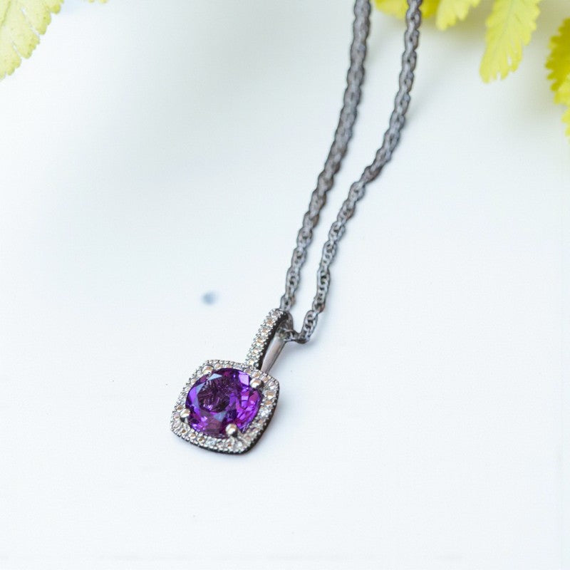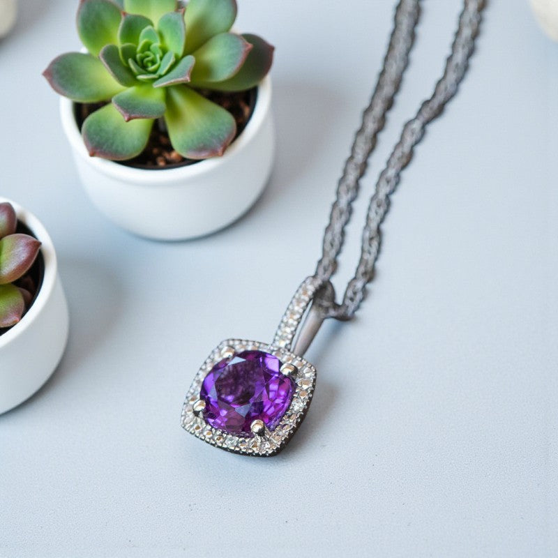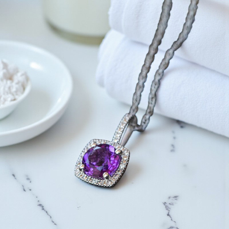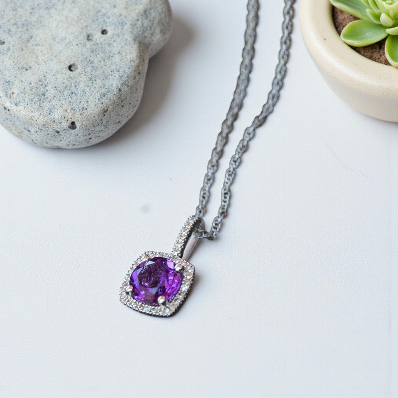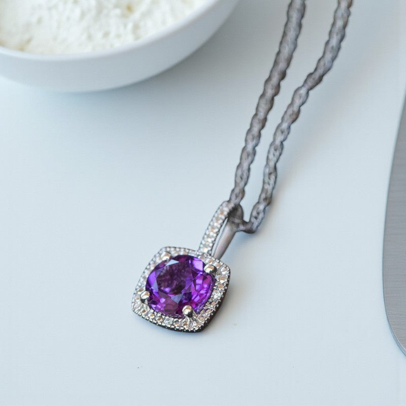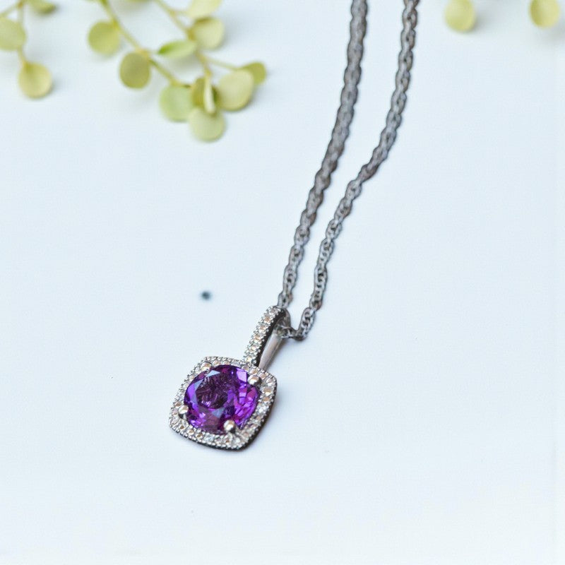 Tranquil Radiance: Amethyst and Diamond Halo Necklace
