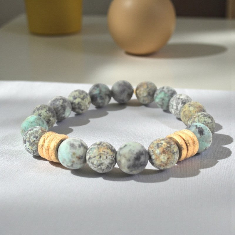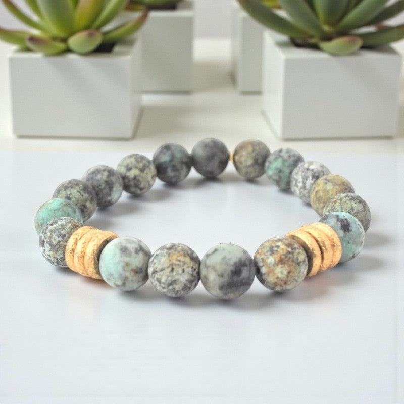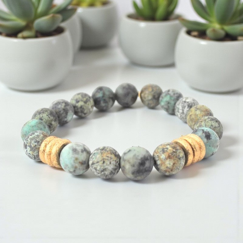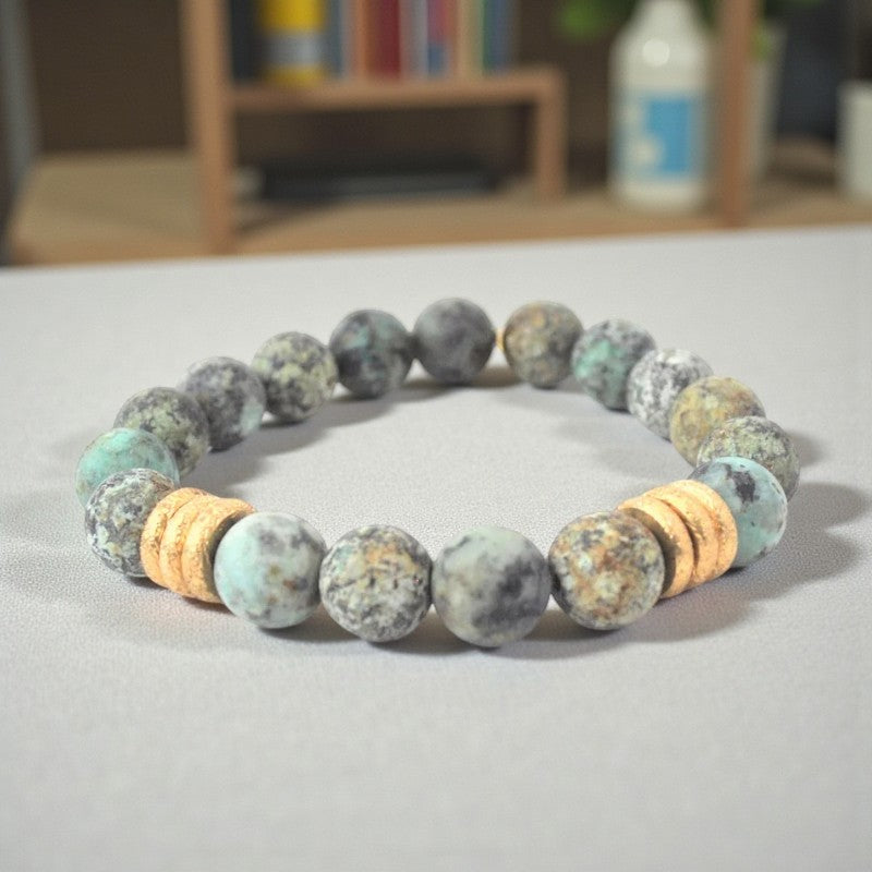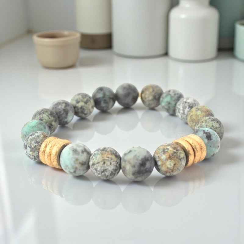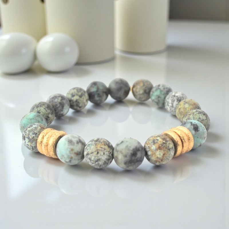 Turquoise bracelet with matte African beads and gold accents