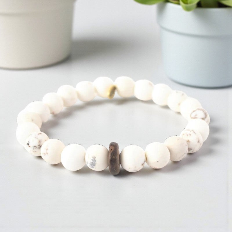 Wear the Matte White Turquoise bracelet as a symbol of balance, communication, and emotional well-being. Let its calming energies envelop you in a sense of tranquility and protection, helping you navigate through life's challenges with grace and resilience. Allow this bracelet to serve as a reminder of the importance of nurturing relationships, both platonic and romantic, and maintaining harmony within yourself.