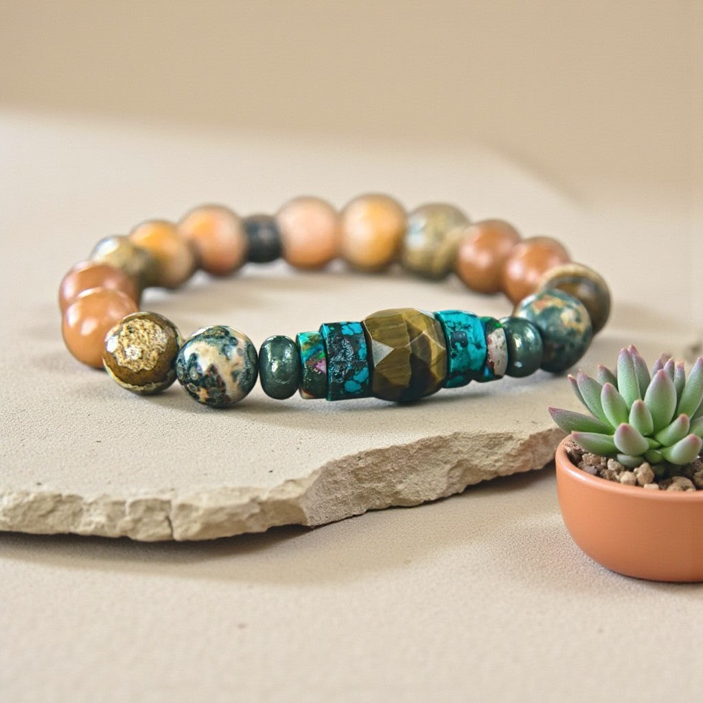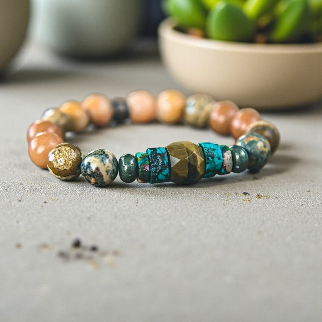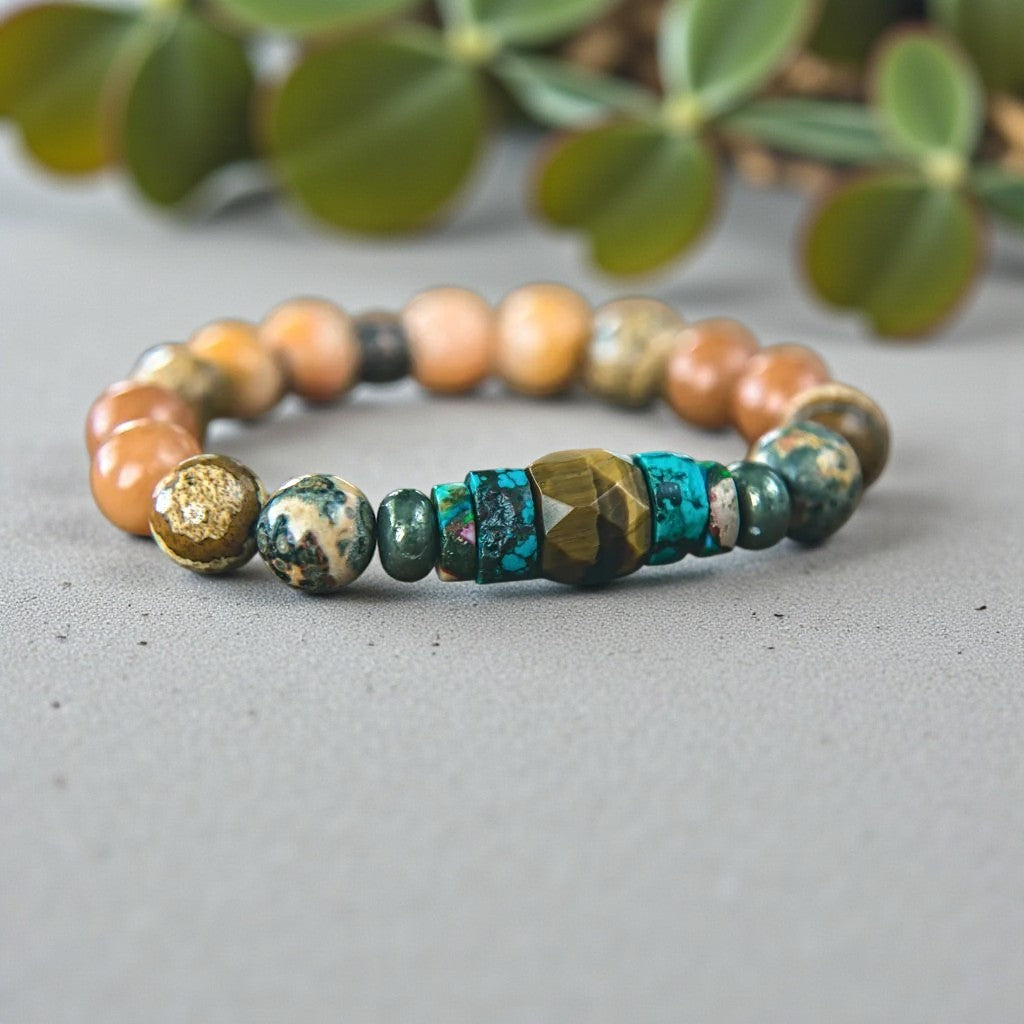 Unleashing Potential: Tiger's Eye, Opal, Turquoise, Pyrite, and Jasper Energy Bracelet