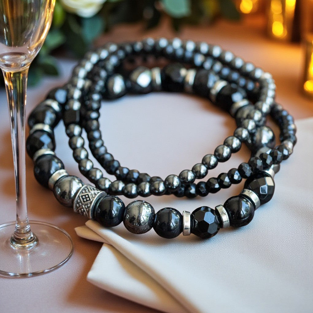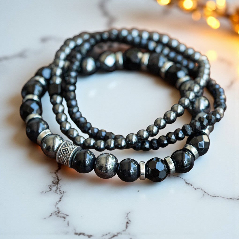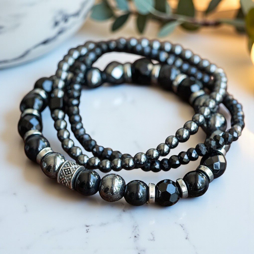 Vitality Guardian: Hematite, Black Spinel, and Onyx Bracelet Trio