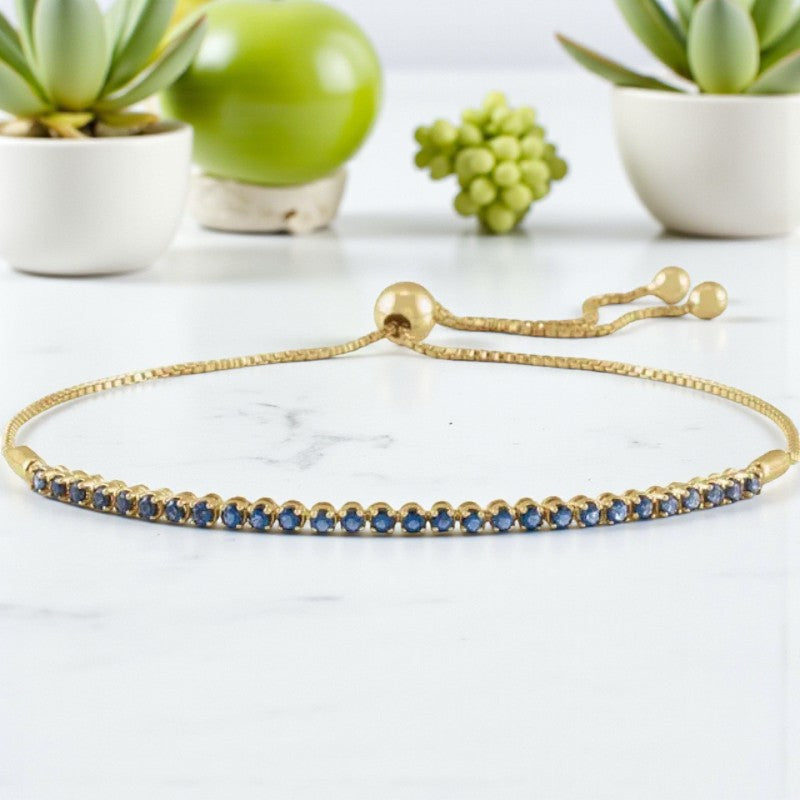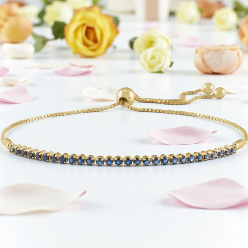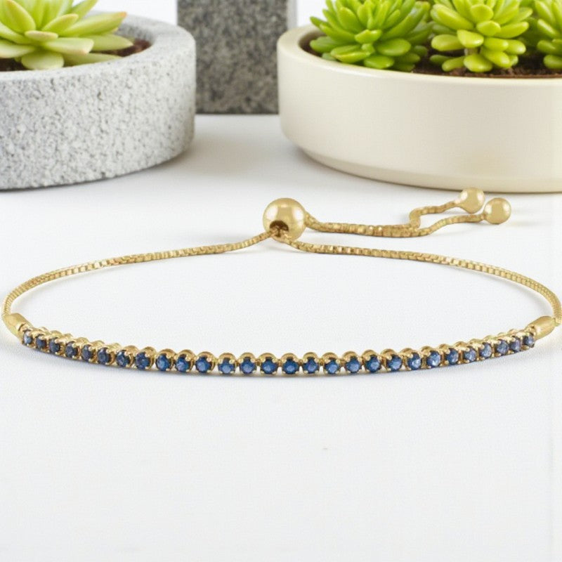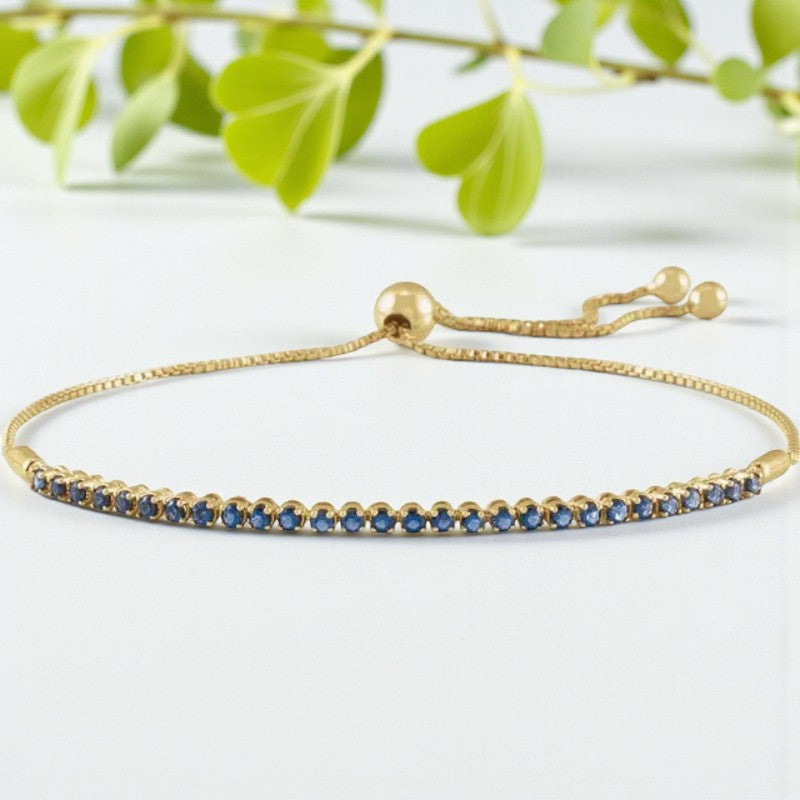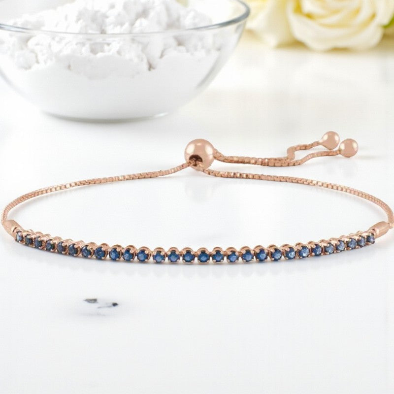 Whispers of Elegance: 14K Natural Blue Sapphire Adjustable Bracelet in Rose, Yellow, or White Gold