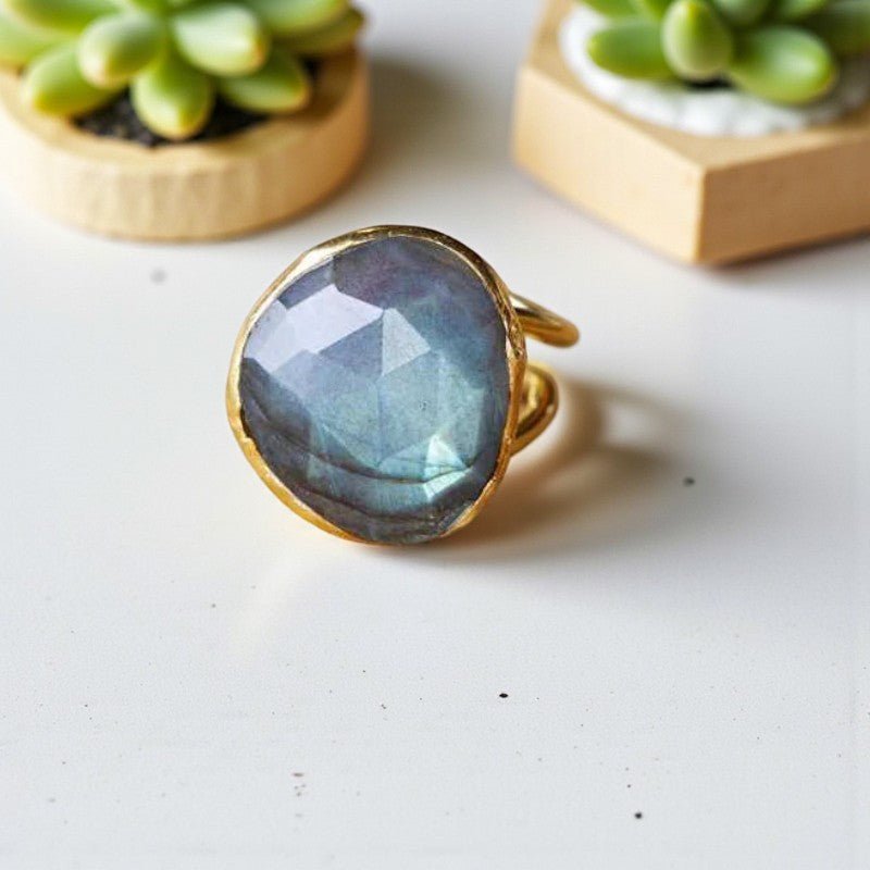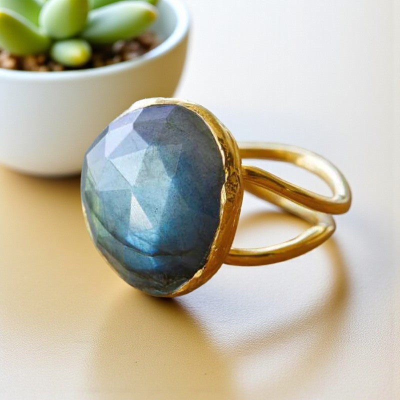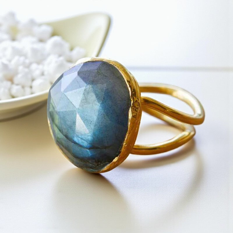 Prepare to captivate your circle with your impeccable style as you showcase this exquisite ring. With its subtle yet striking beauty, this piece exudes elegance without overwhelming, making it a must-have addition to your jewelry repertoire. Are you ready to embrace the allure of Labradorite and elevate your fashion statement?