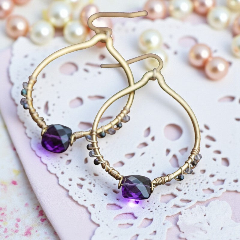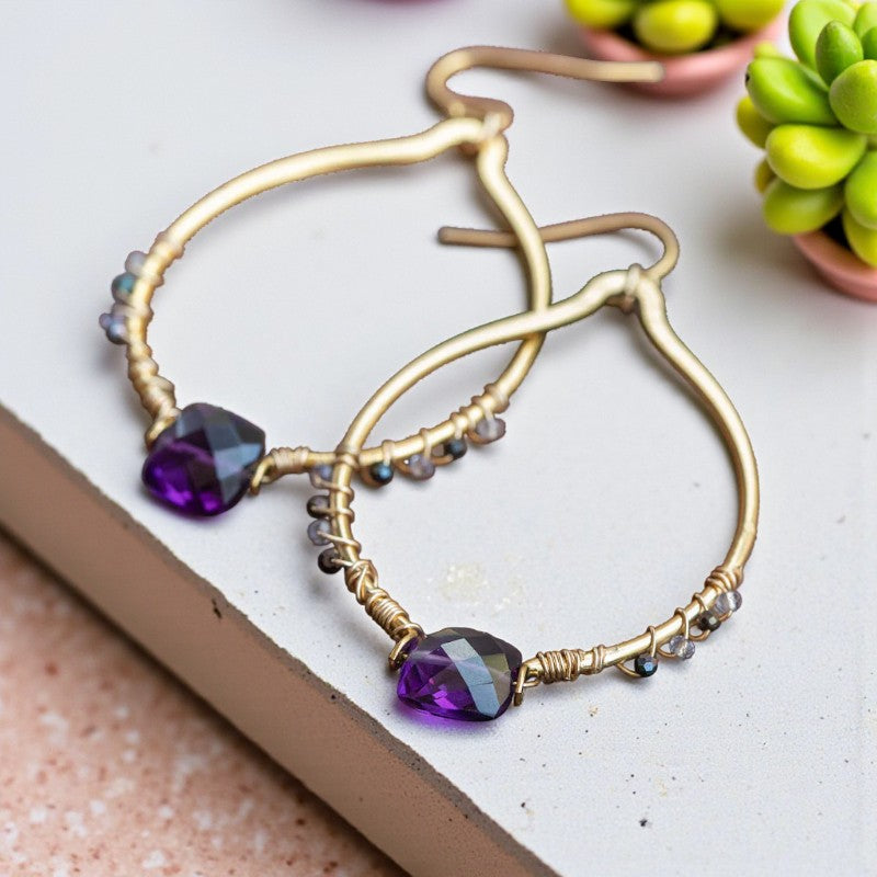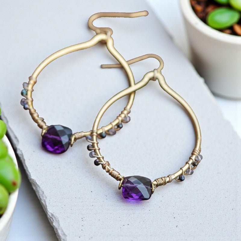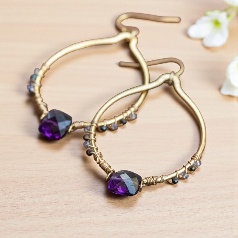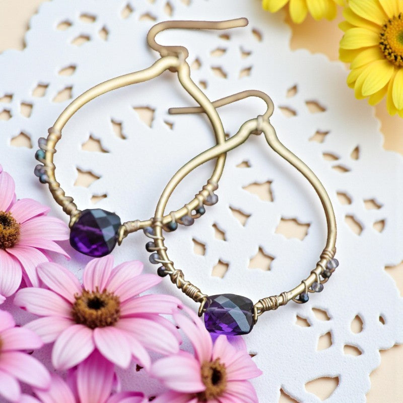 Whispers of Wisdom: Amethyst, Tanzanite, and Rainbow Spinel Earrings