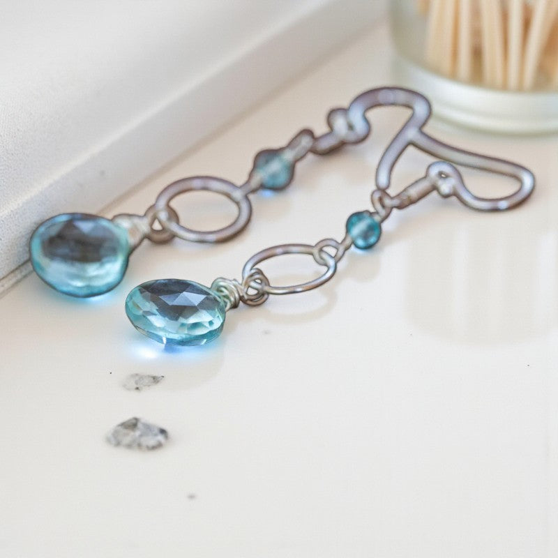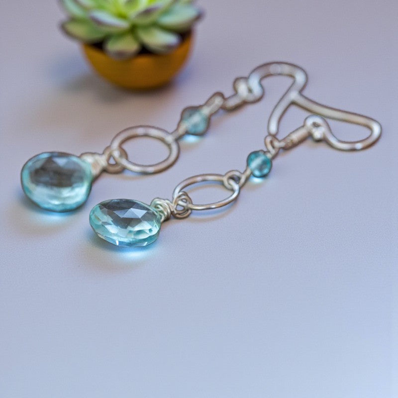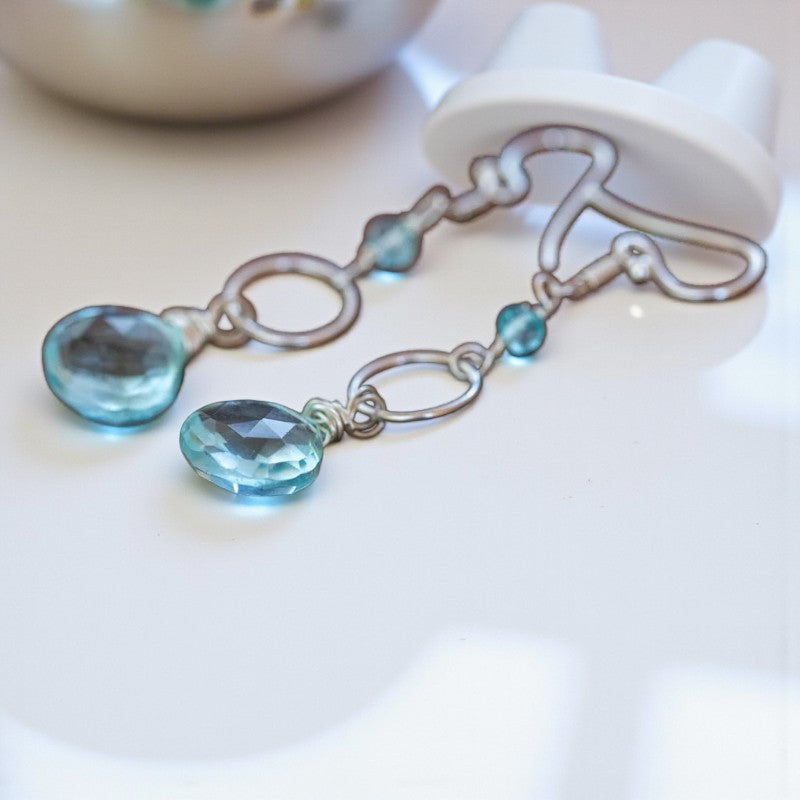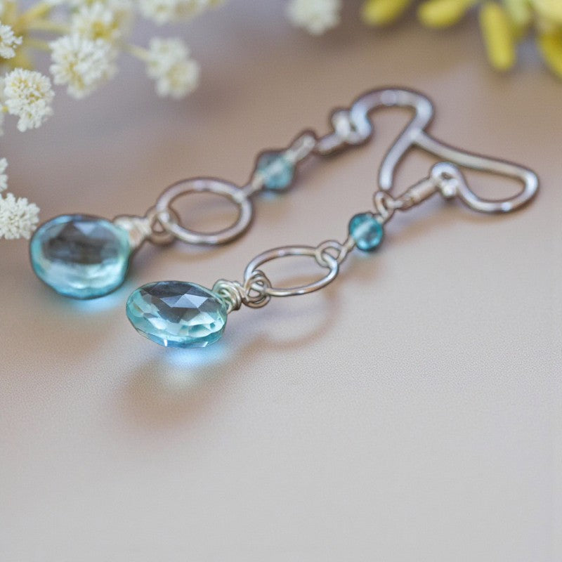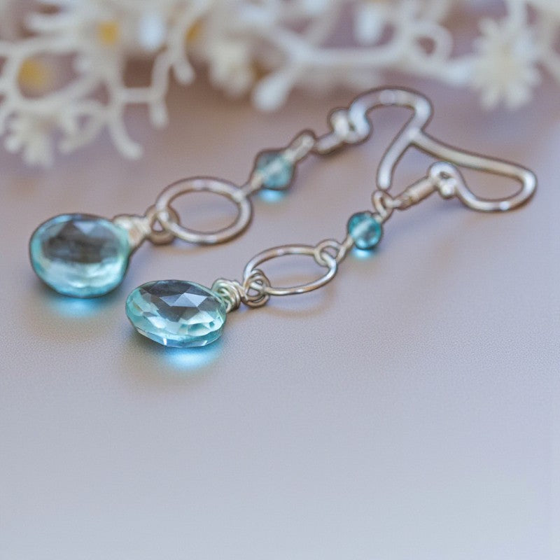 Beyond their aesthetic appeal, aquamarine is revered for its holistic properties. Recognized as a stone of clarity and communication, it is believed to calm the emotions, alleviate stress, and enhance one's ability to communicate authentically and honestly. Spiritually, aquamarine is associated with the throat chakra, promoting clear communication and inner tranquility. It is also thought to inspire creativity and uplift the spirit, making these earrings not just a fashion statement but a source of serenity and inspiration.