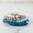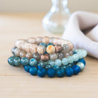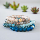 - Introduce a pop of color with the matte sodalite bracelet, featuring a deep blue hue that breaks the monotony and brings a sense of relief from tension, promoting focus and authenticity.