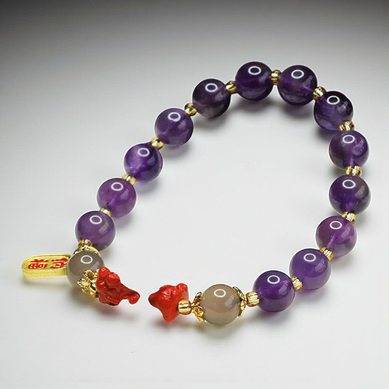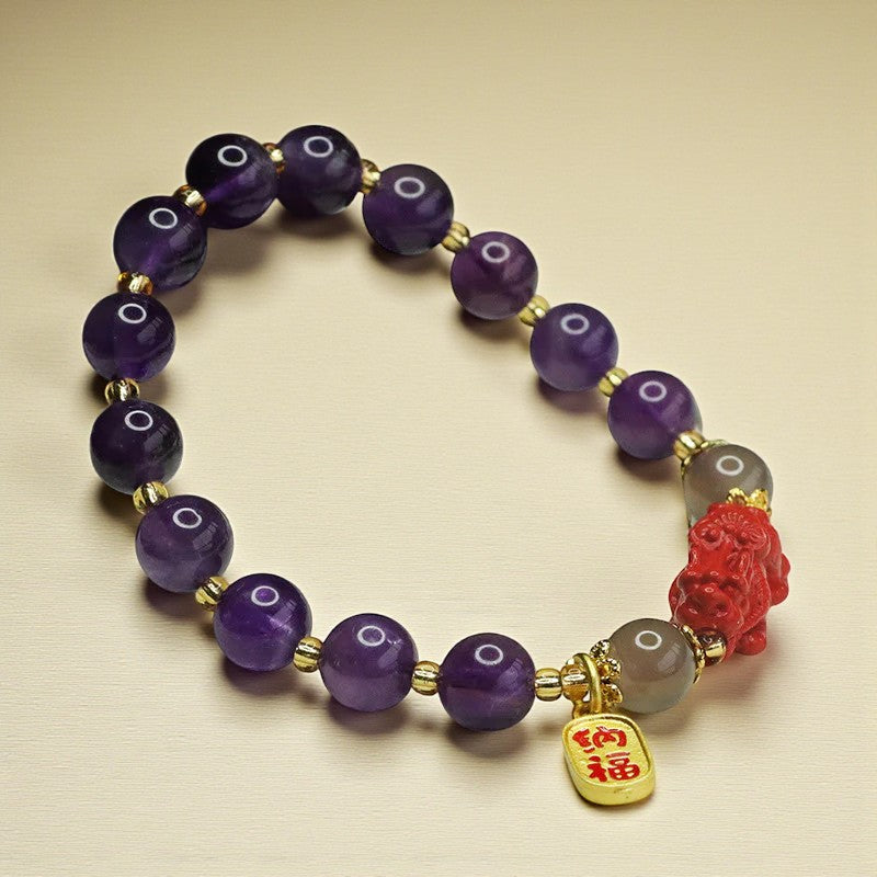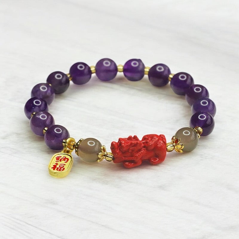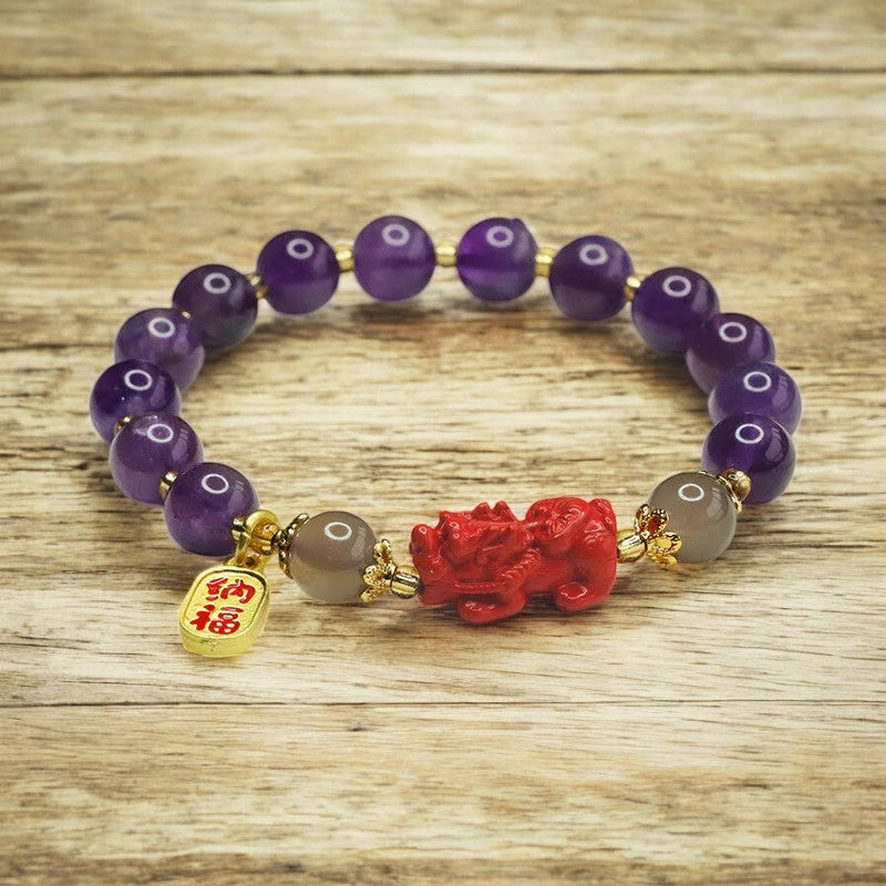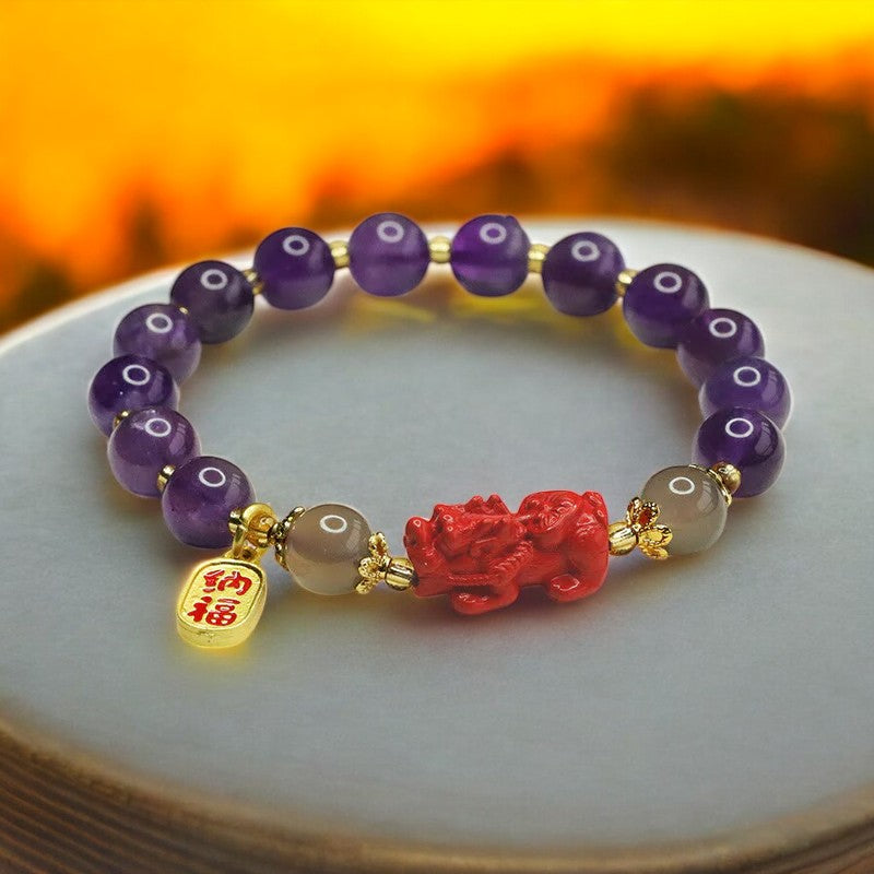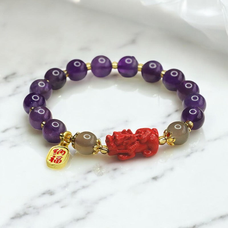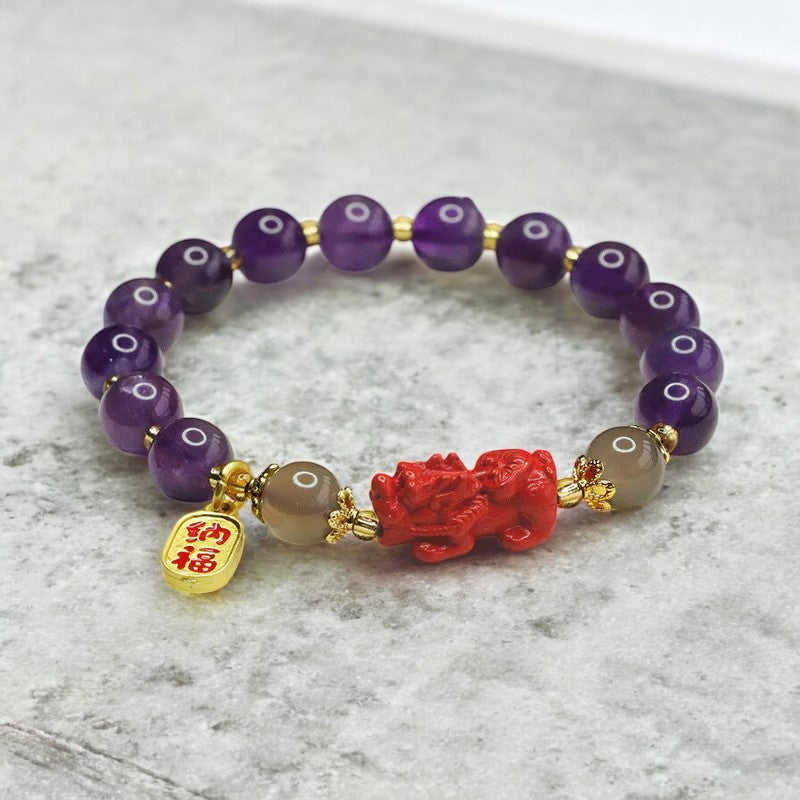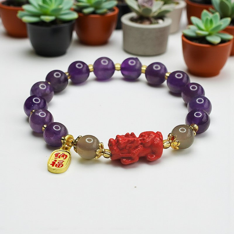 Natural Amethyst Cinnabar Pi Xiu Fu Character Calm Bracelet