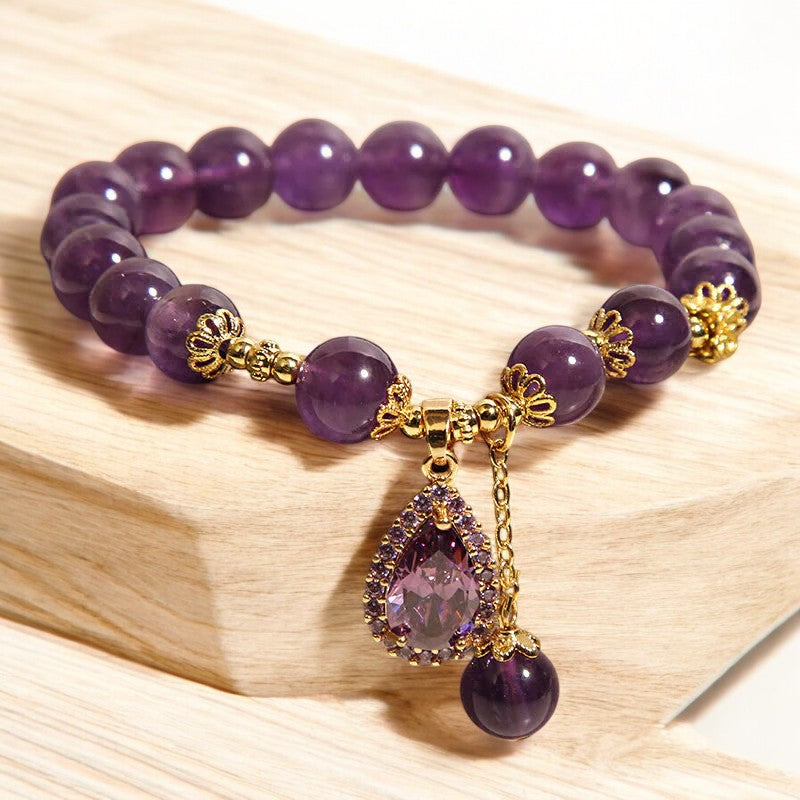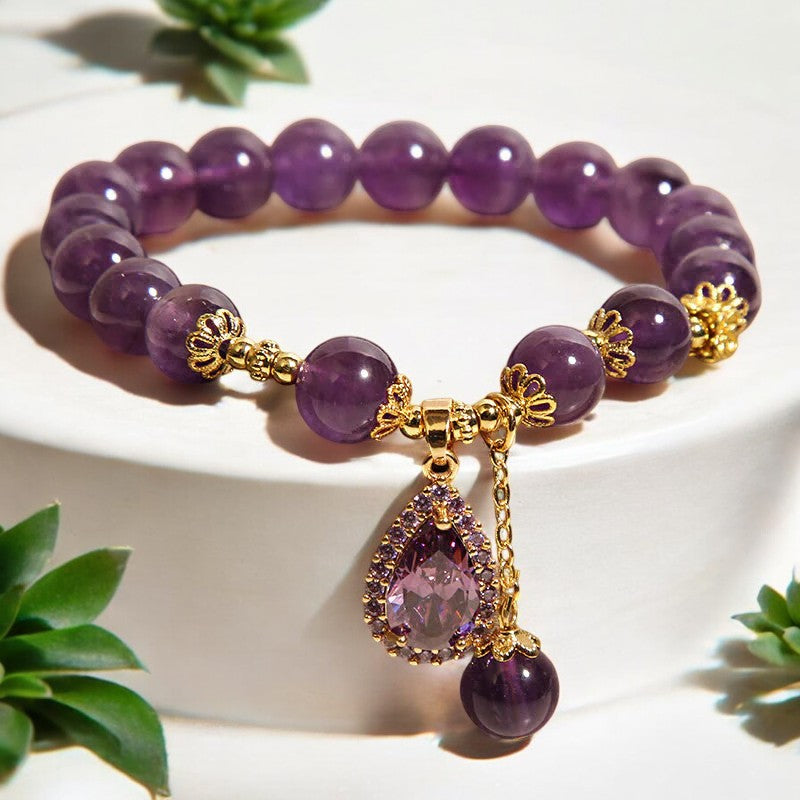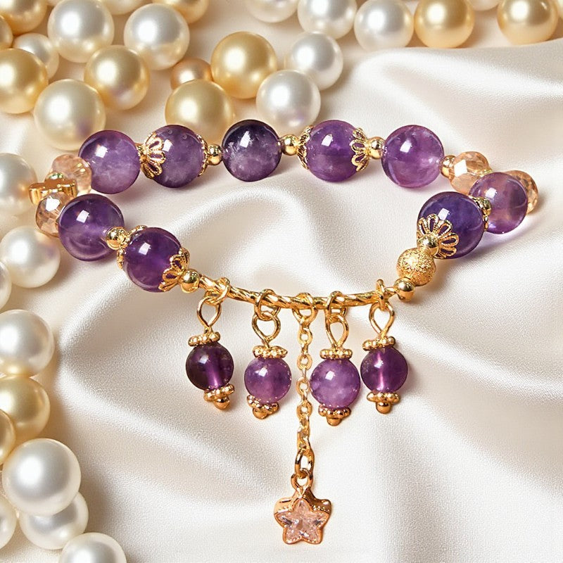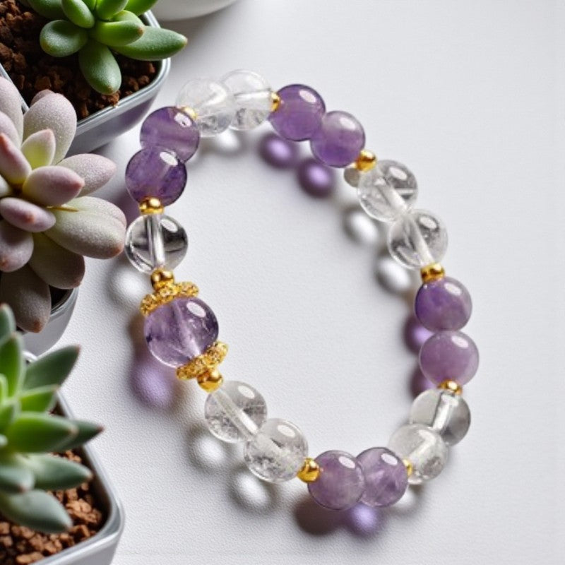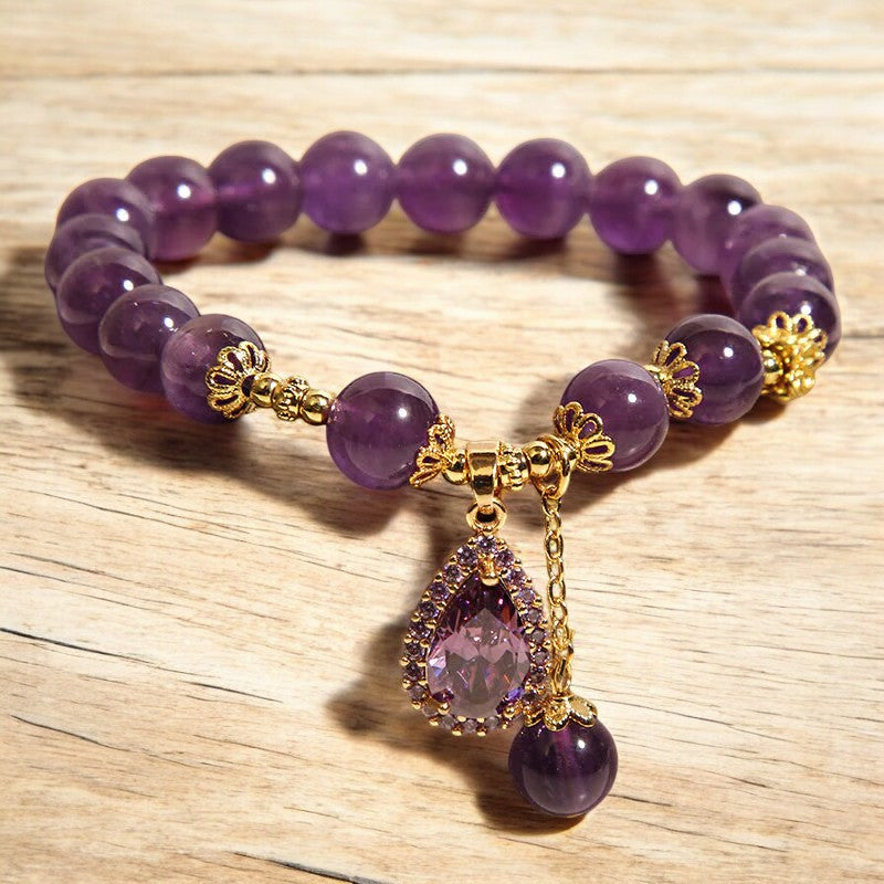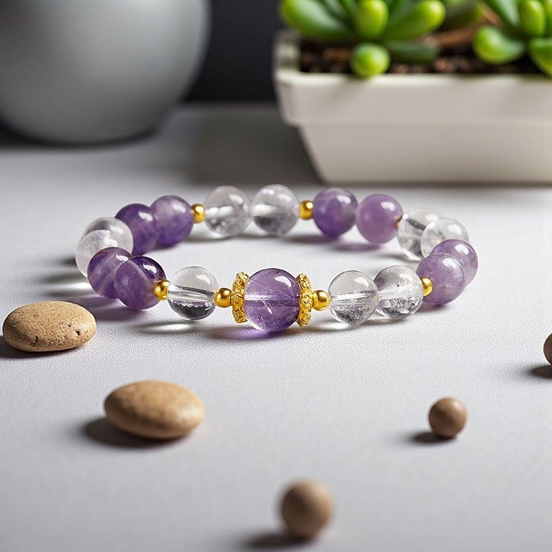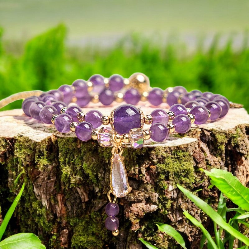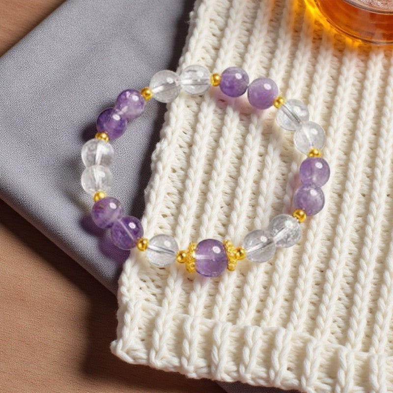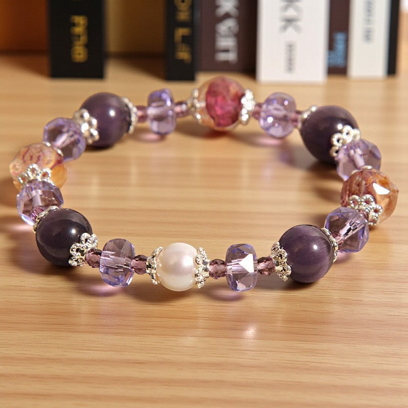 Natural Amethyst Pearl Crystal Positive Intent Bracele