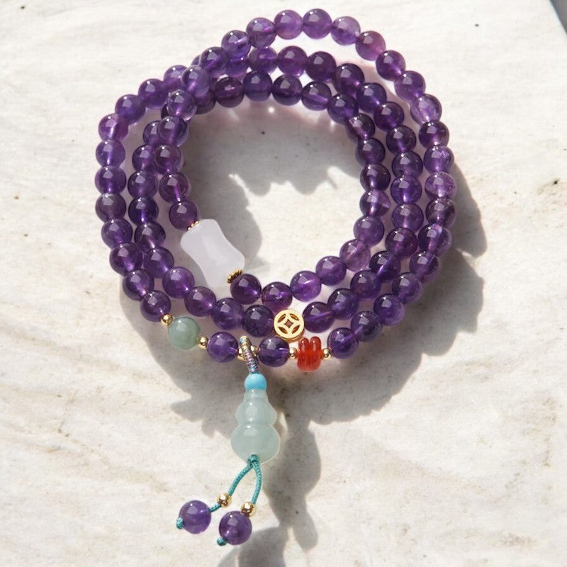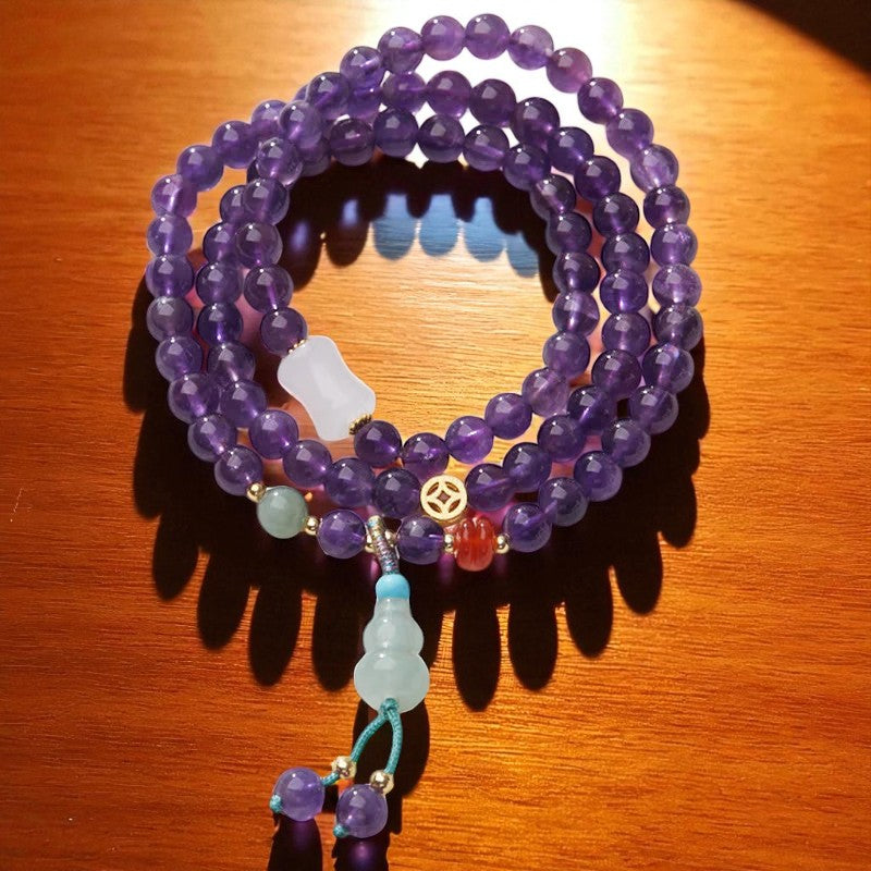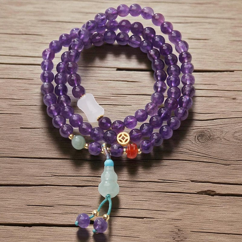 Natural Amethyst Beads Coin Hanging Gourd Chalcedony Lotus Serenity Multi-layer Bracelet