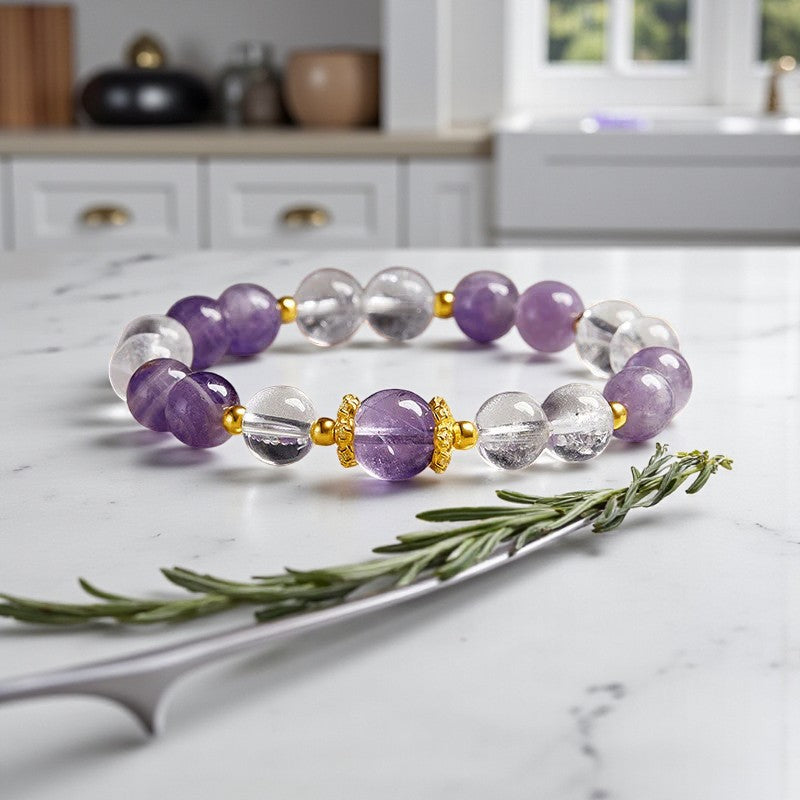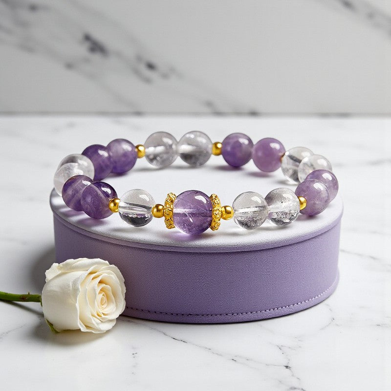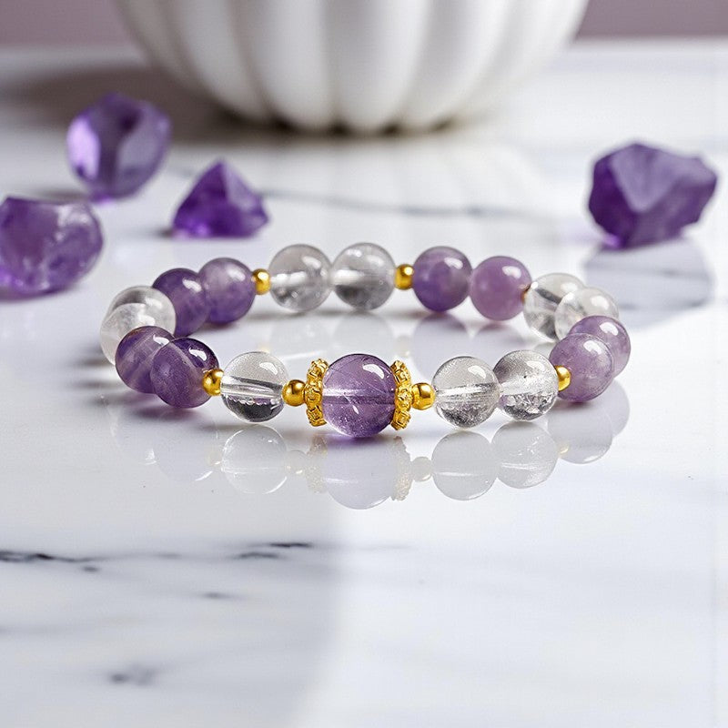 Sterling Silver Natural Amethyst White Crystal Balance Bracelet925