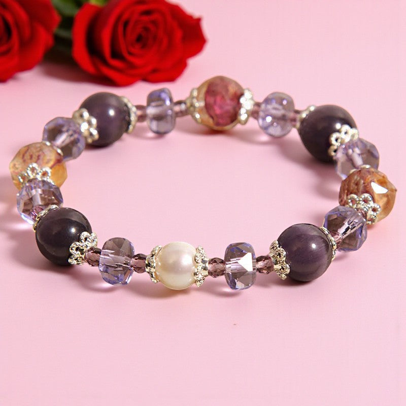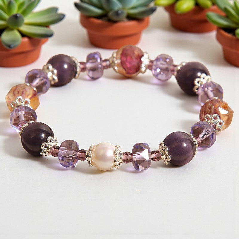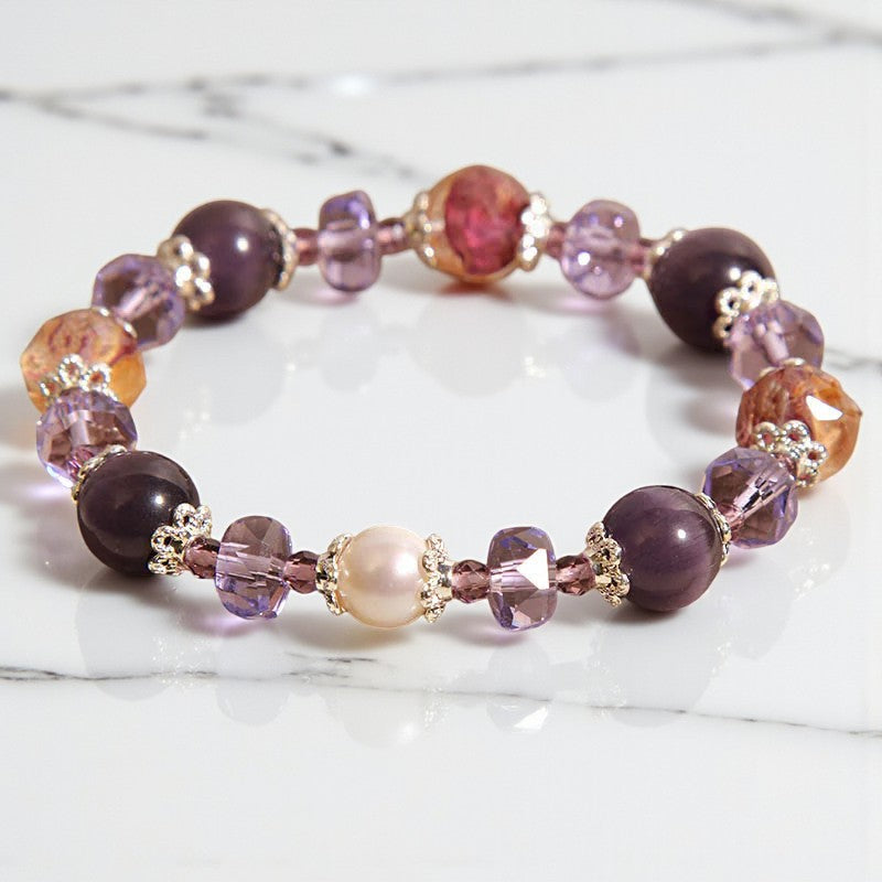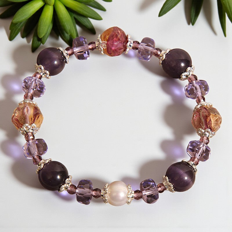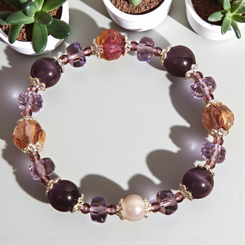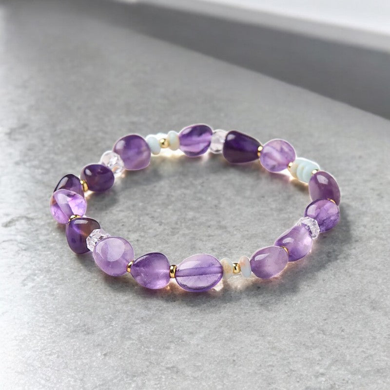 Natural Gemstone (Amethyst, Citrine, Pearl Shell) Serenity Bracelet