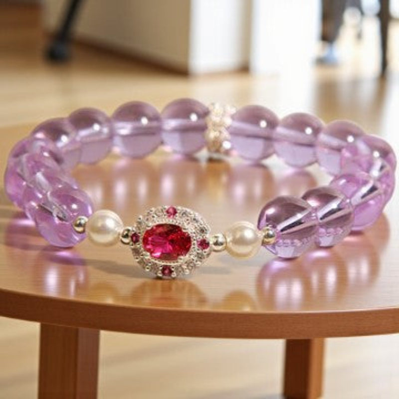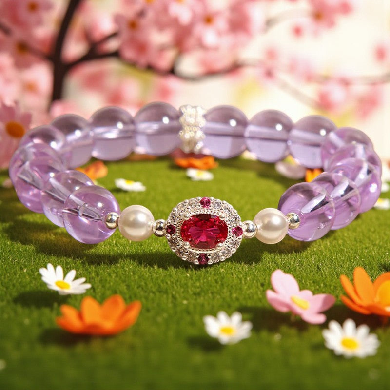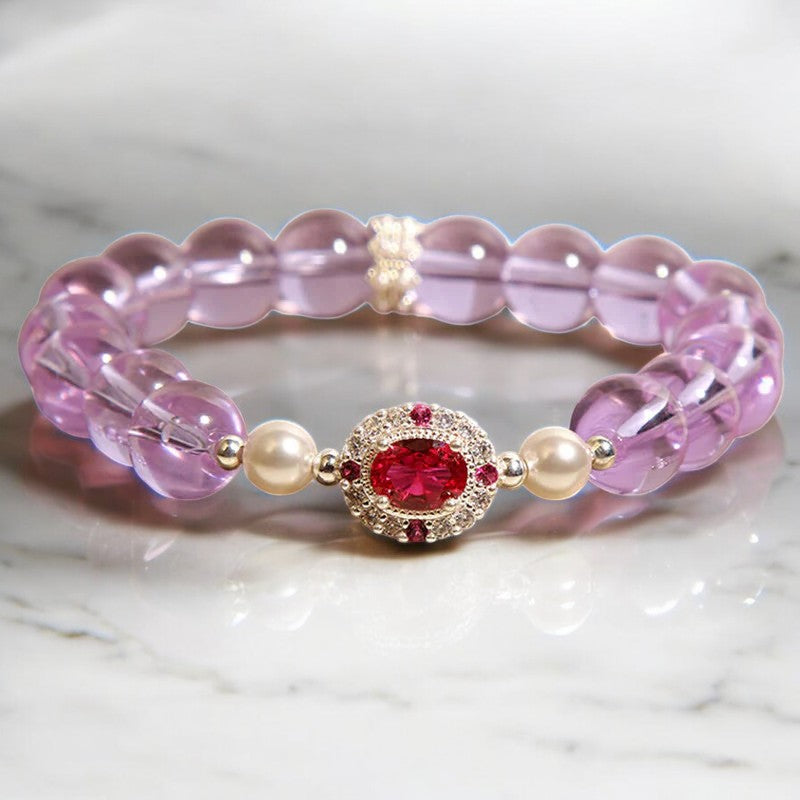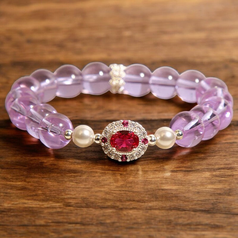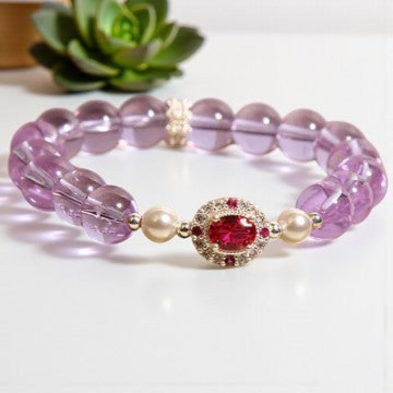 Natural Amethyst Pearl Red Zircon Balance Bracelet