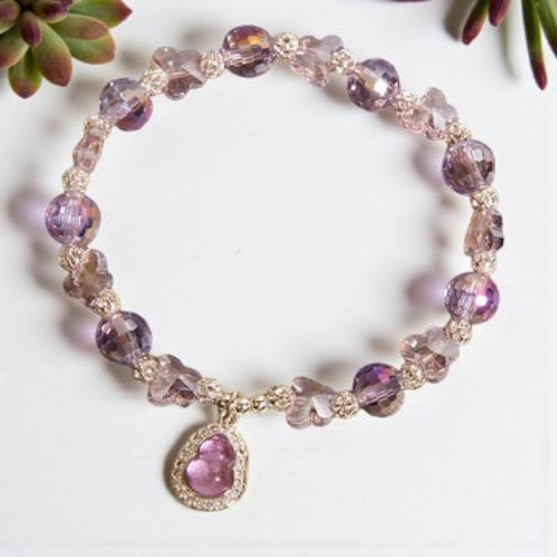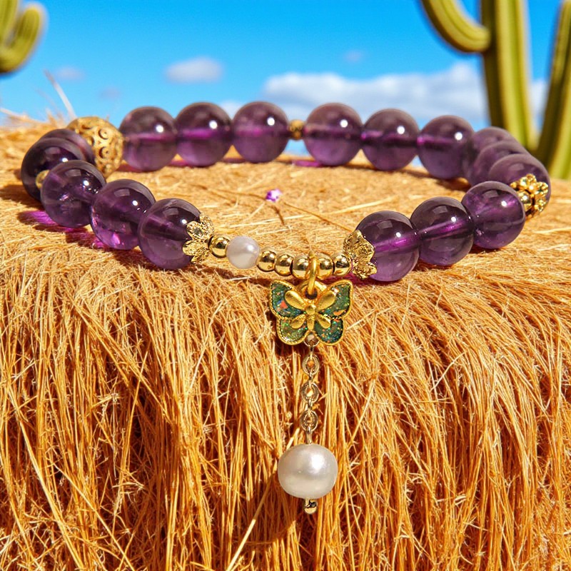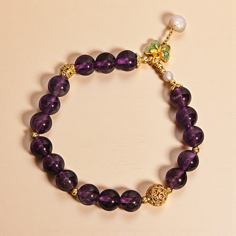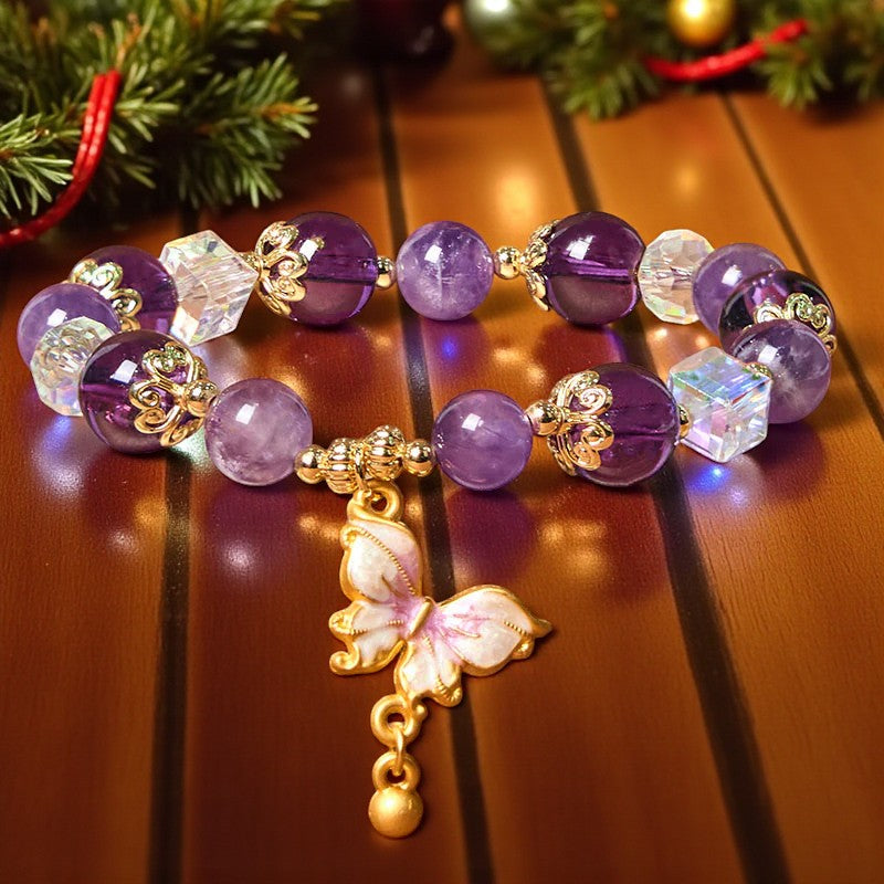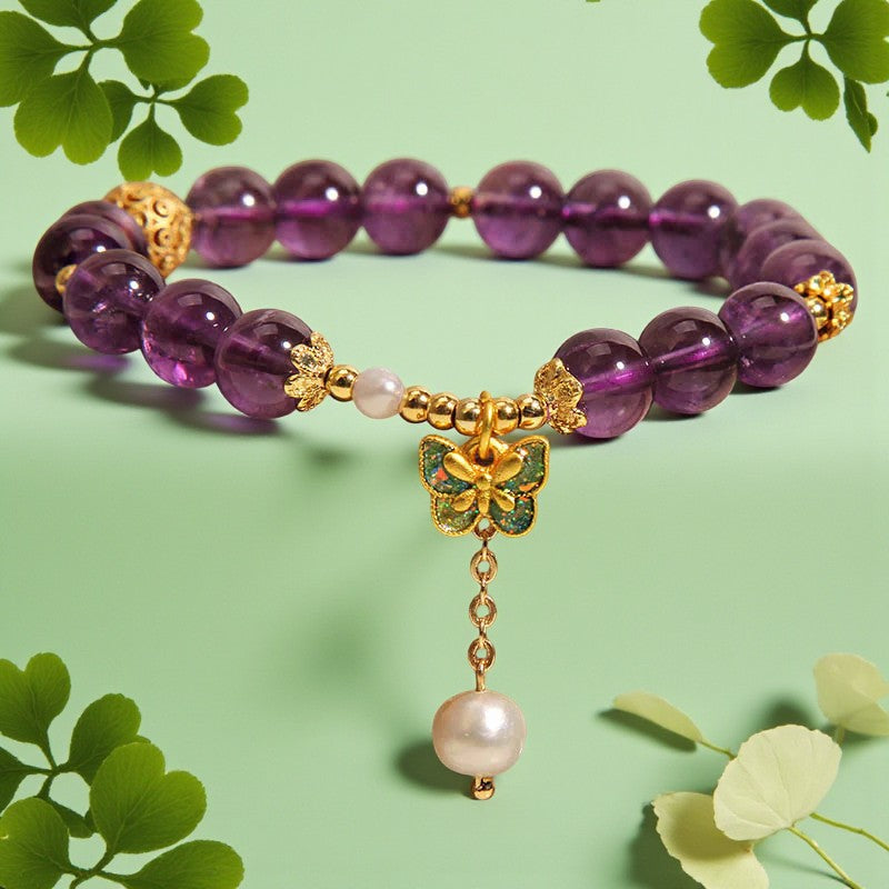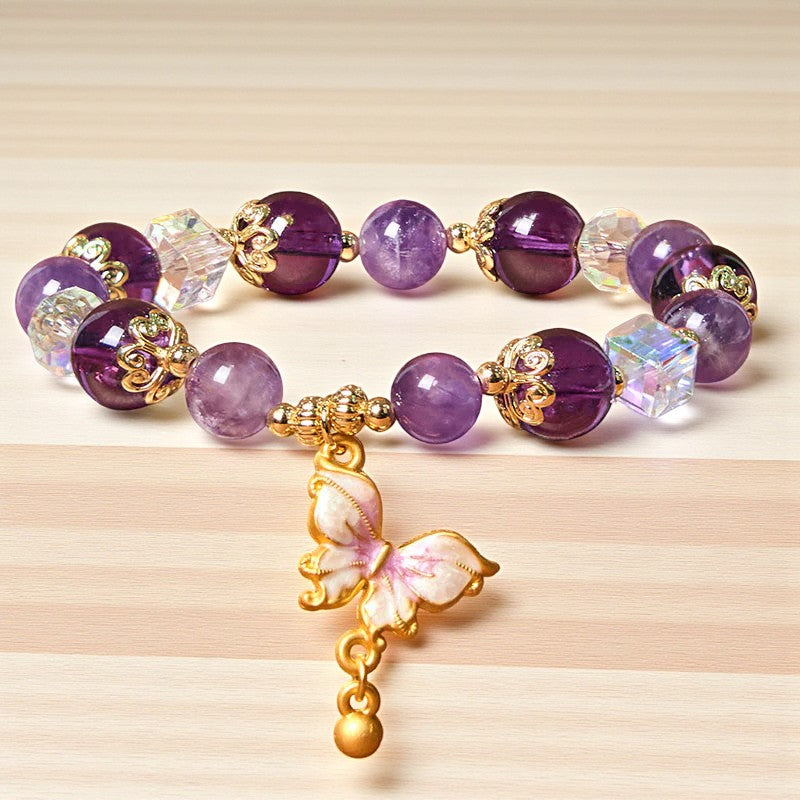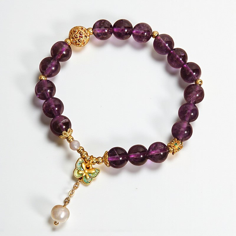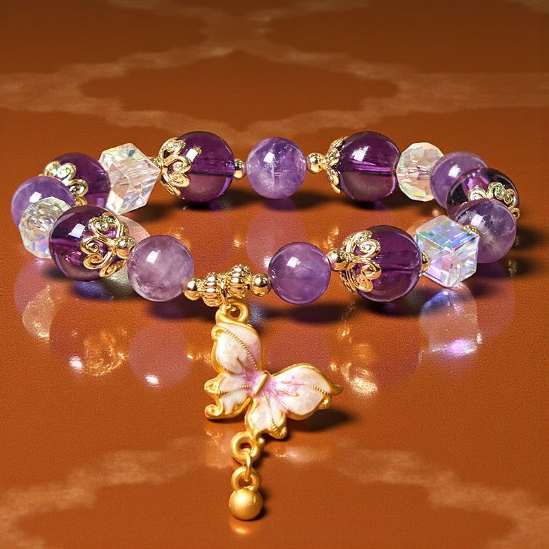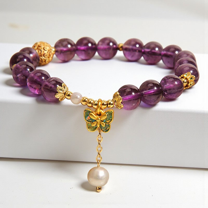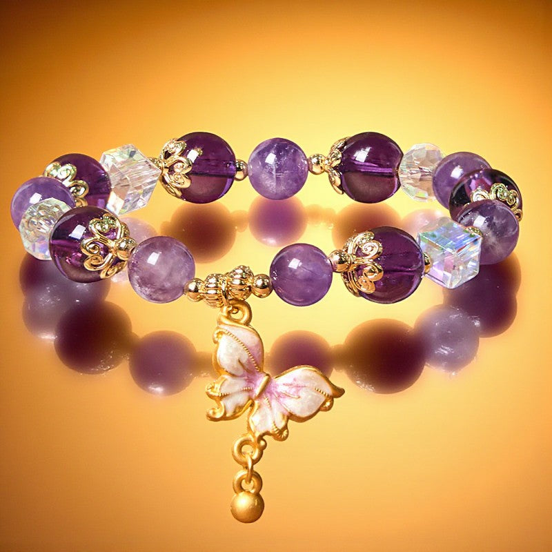 Spiritual Healing Amethyst Pearl Crystal Butterfly Charm Bracelet