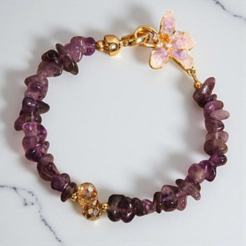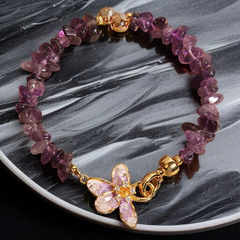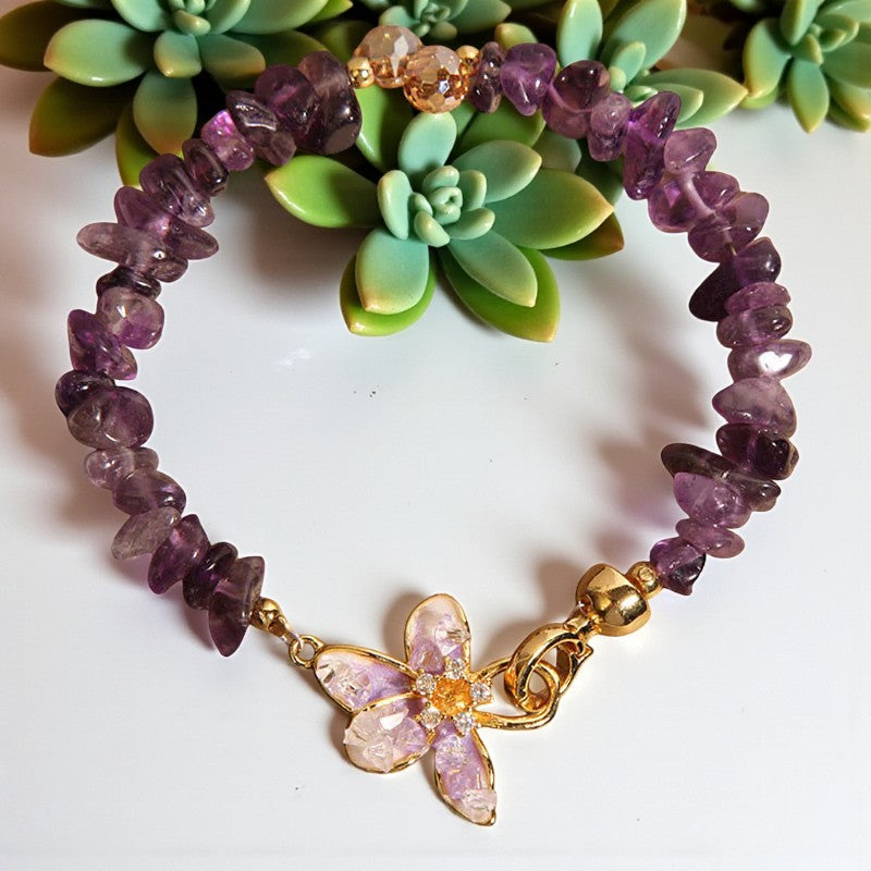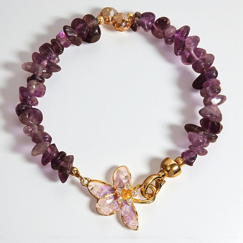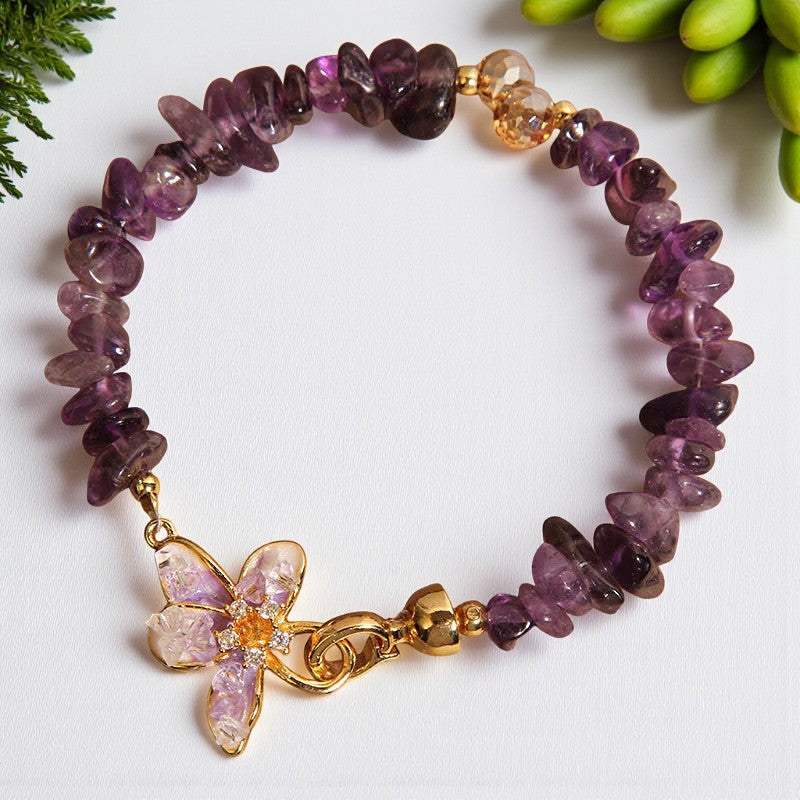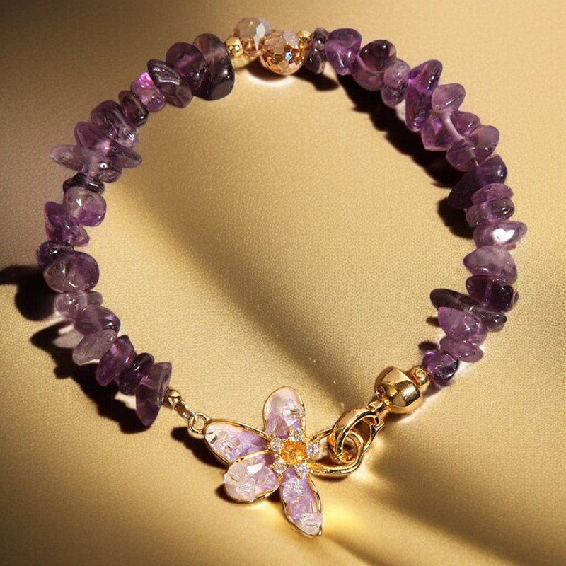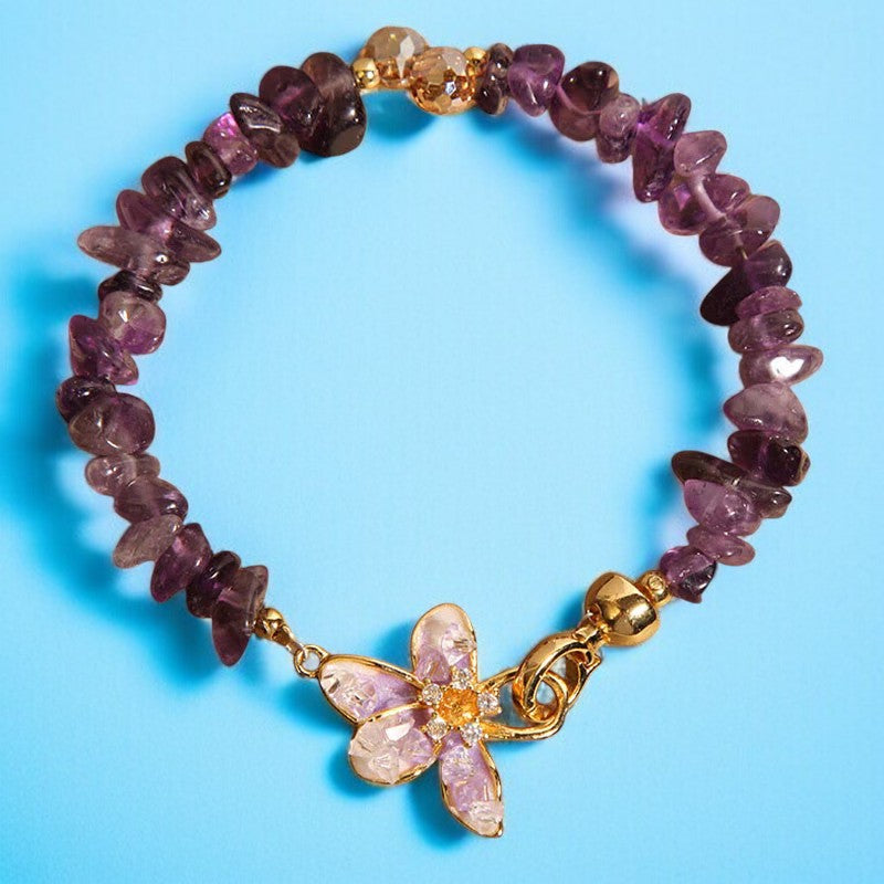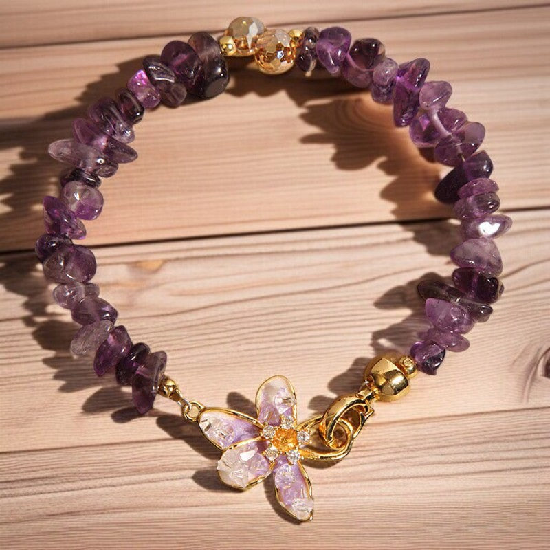 Handcrafted Natural Amethyst Amber Green Butterfly Healing Bracelet