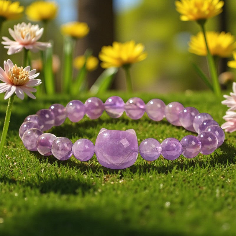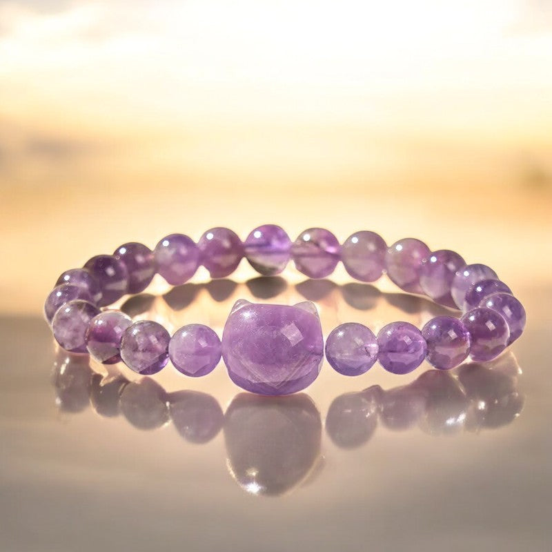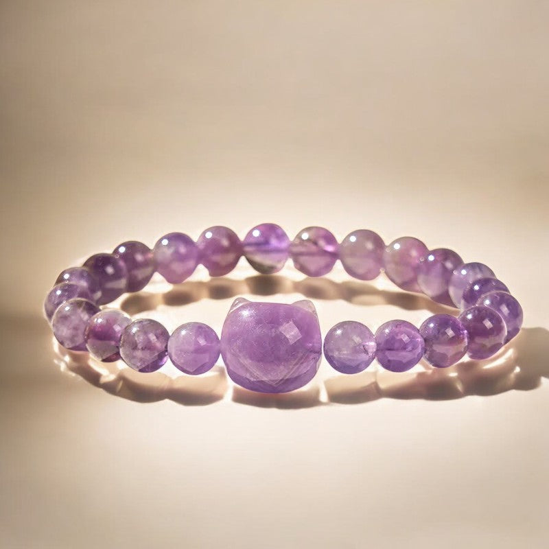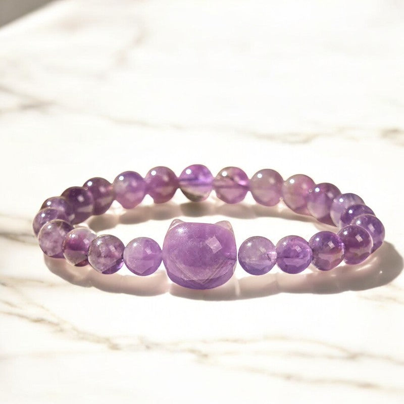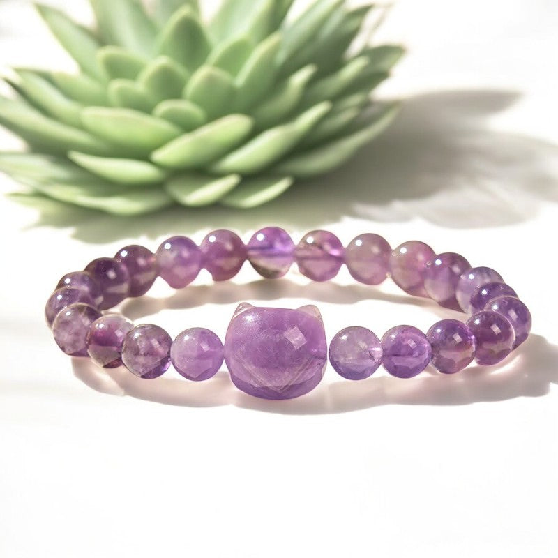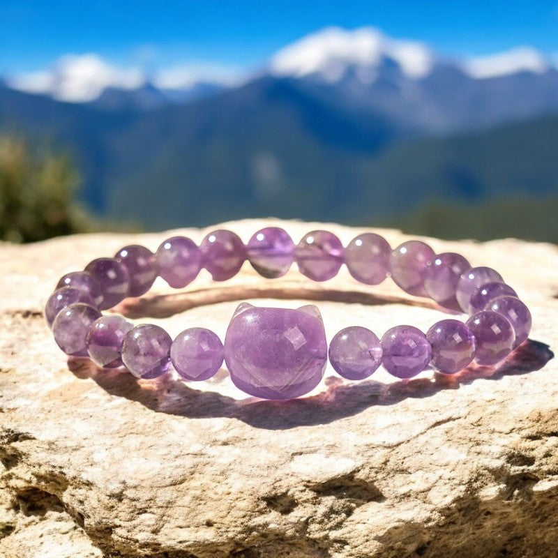 Cute Cat Face Amethyst Spiritual Awareness Bracelet
