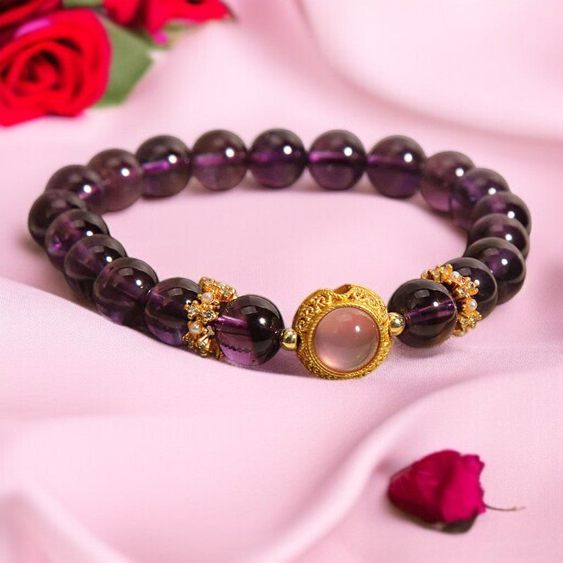 Natural Gemstone (Amethyst, Strawberry Quartz) Beads Healing Bracelet