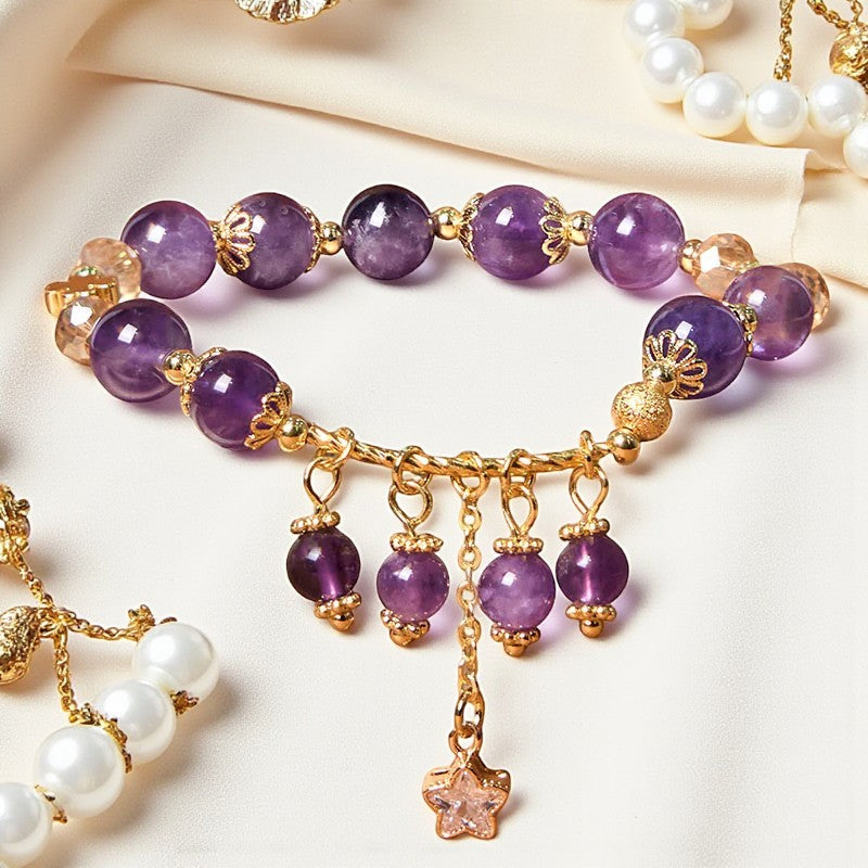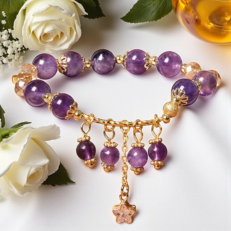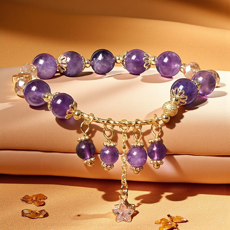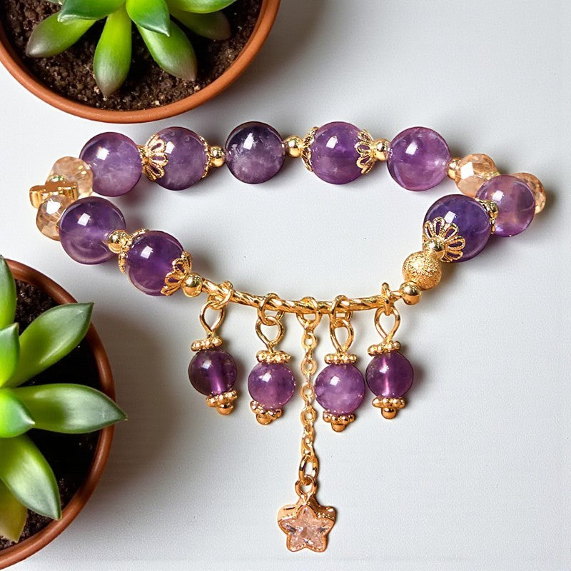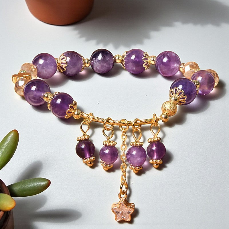 Natural Gemstone (Amethyst, Four Leaf Clover, Star) Serenity Bracelet