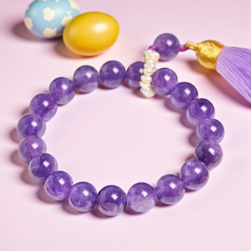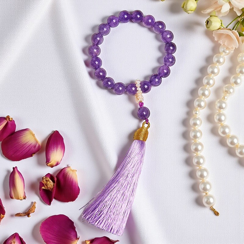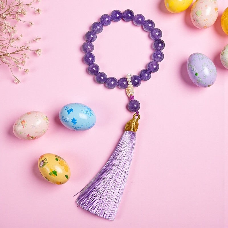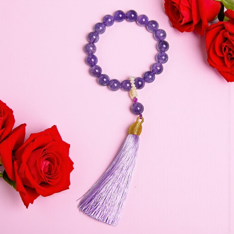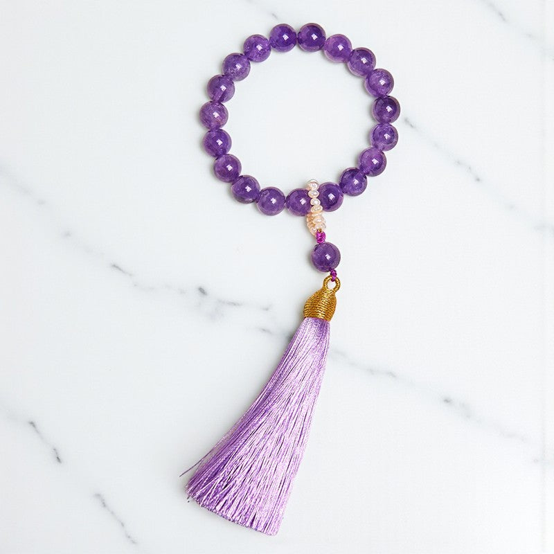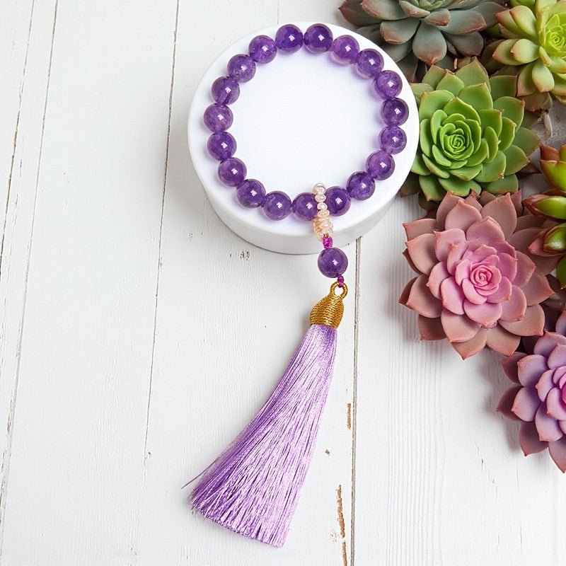 Calming Natural Amethyst Beads Meditation Tassel Bracelet