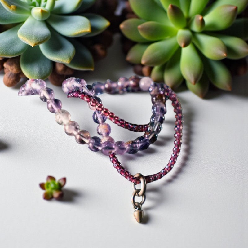 Healing Retro 6mm Amethyst 4mm Garnet Multilayer Balance Bracelet